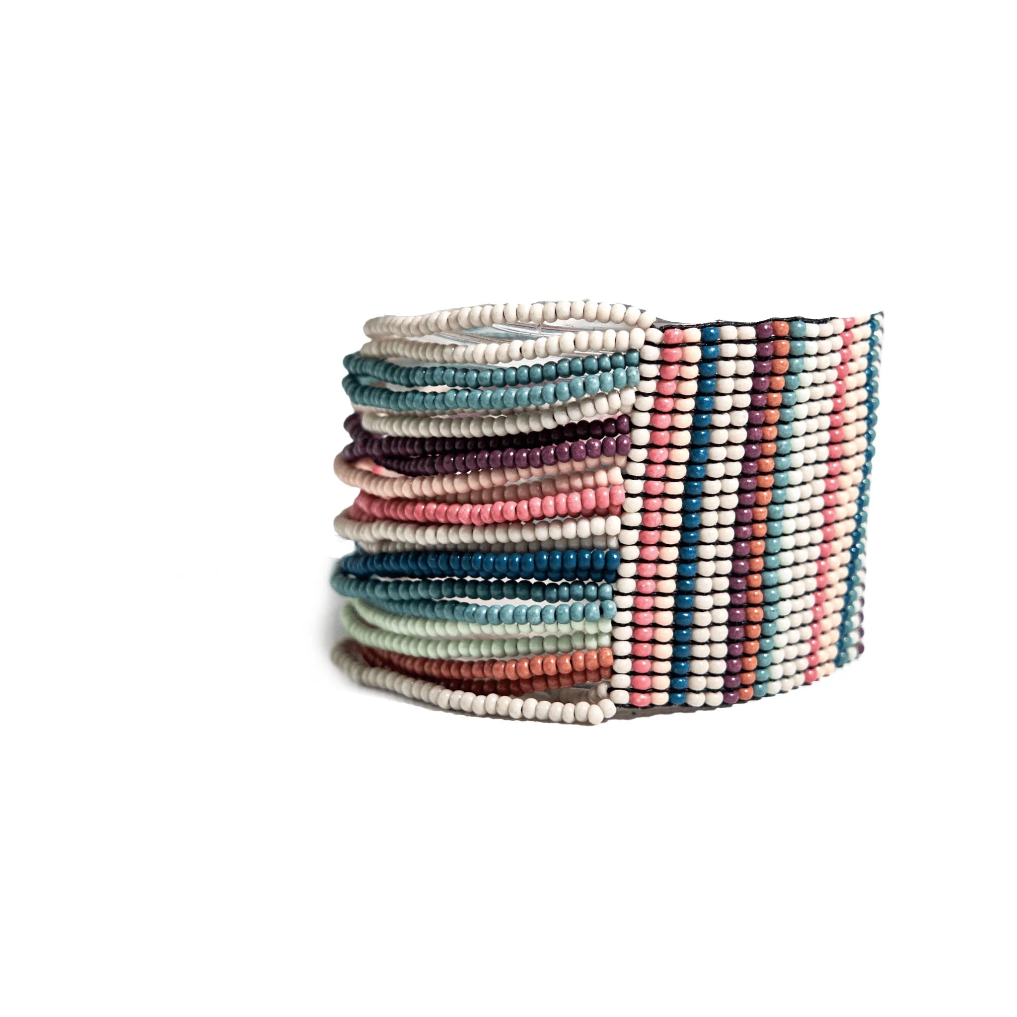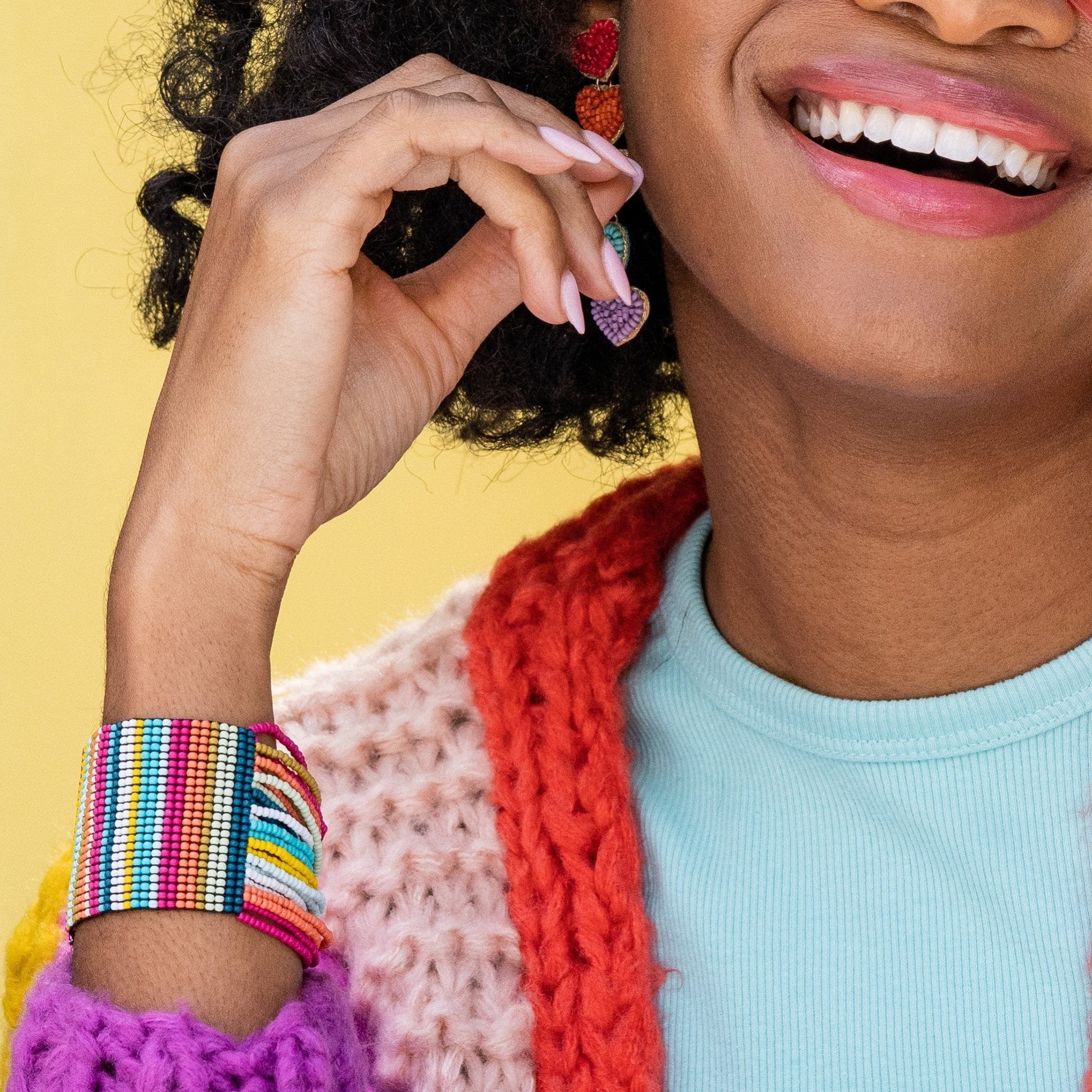 Did someone say business in front, party in the back? Chic + bold, this handmade bracelet is sure to heighten your look! Mixed color seed beads make a beautiful statement piece perfect for any occasion!
