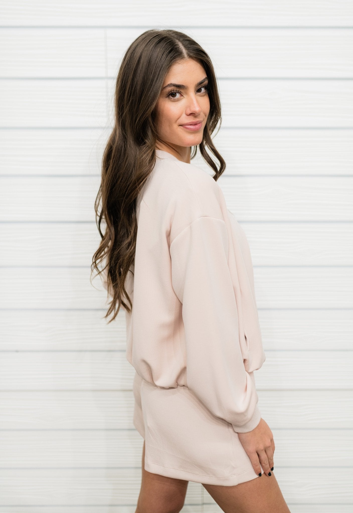 **For the perfect set, you can pair this amazing jacket with our Get Moving Shorts in Blush!