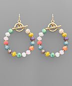 Glass Bead Circle Earring with a toggle design. 2" Length.