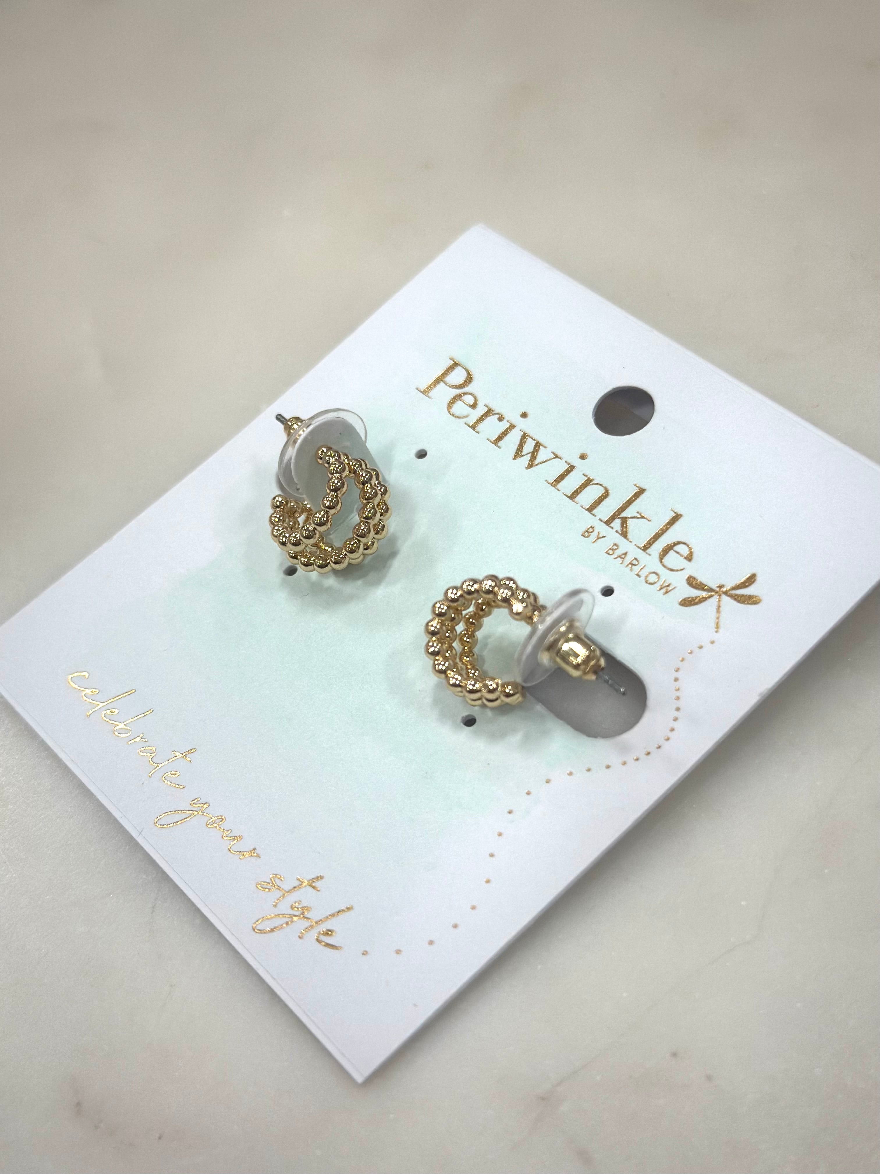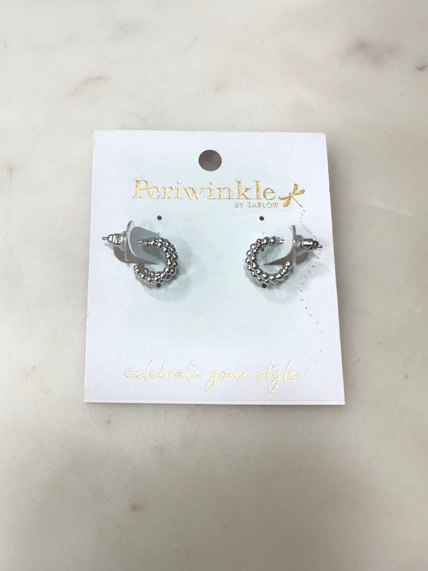 Designed with subtle detail and everyday elegance, the Periwinkle by Barlow Textured Mini Hoop Earrings feature a compact hoop with a softly beaded texture that adds dimension and shine. The polished finish keeps the look timeless while the textured design brings a modern edge.