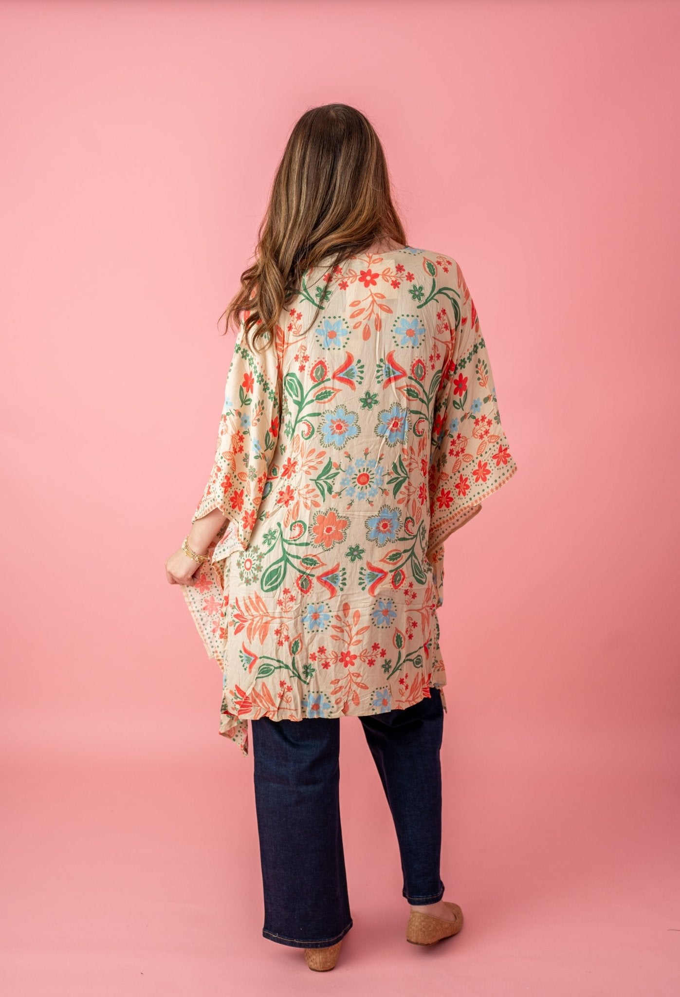 PRINTED RAYON CREPON KIMONO -SEMI-SHEER KIMONO -FEATURED IN A FLOWY DESIGN WITH COLORFULL PATTERN -OPEN FRONT AND WIDE SLEEVES