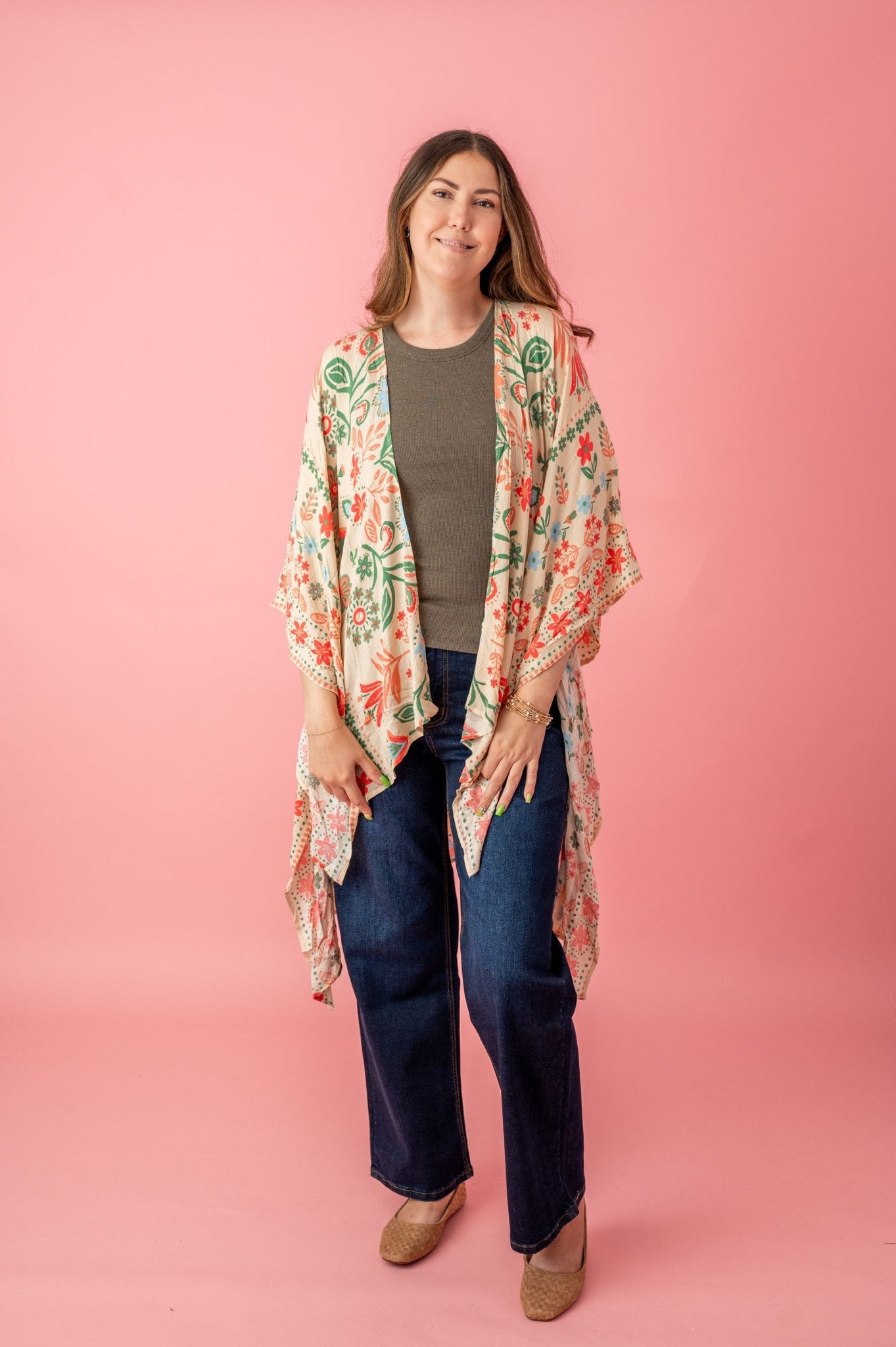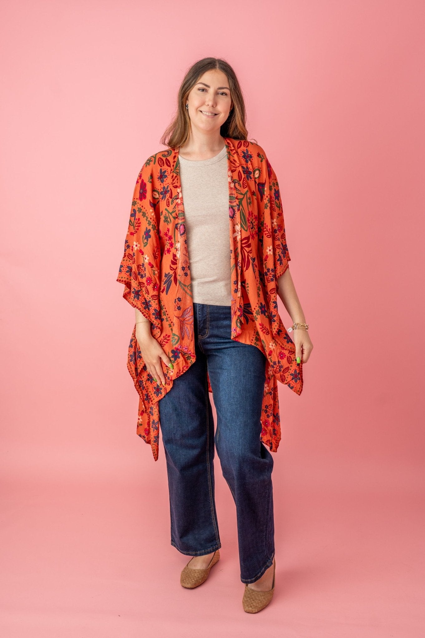 If you're looking to impress, this Kimono will definitely do the job! Add a belt or wear it open over your favorite jeans or shorts or bikini...whatever style you fancy most!