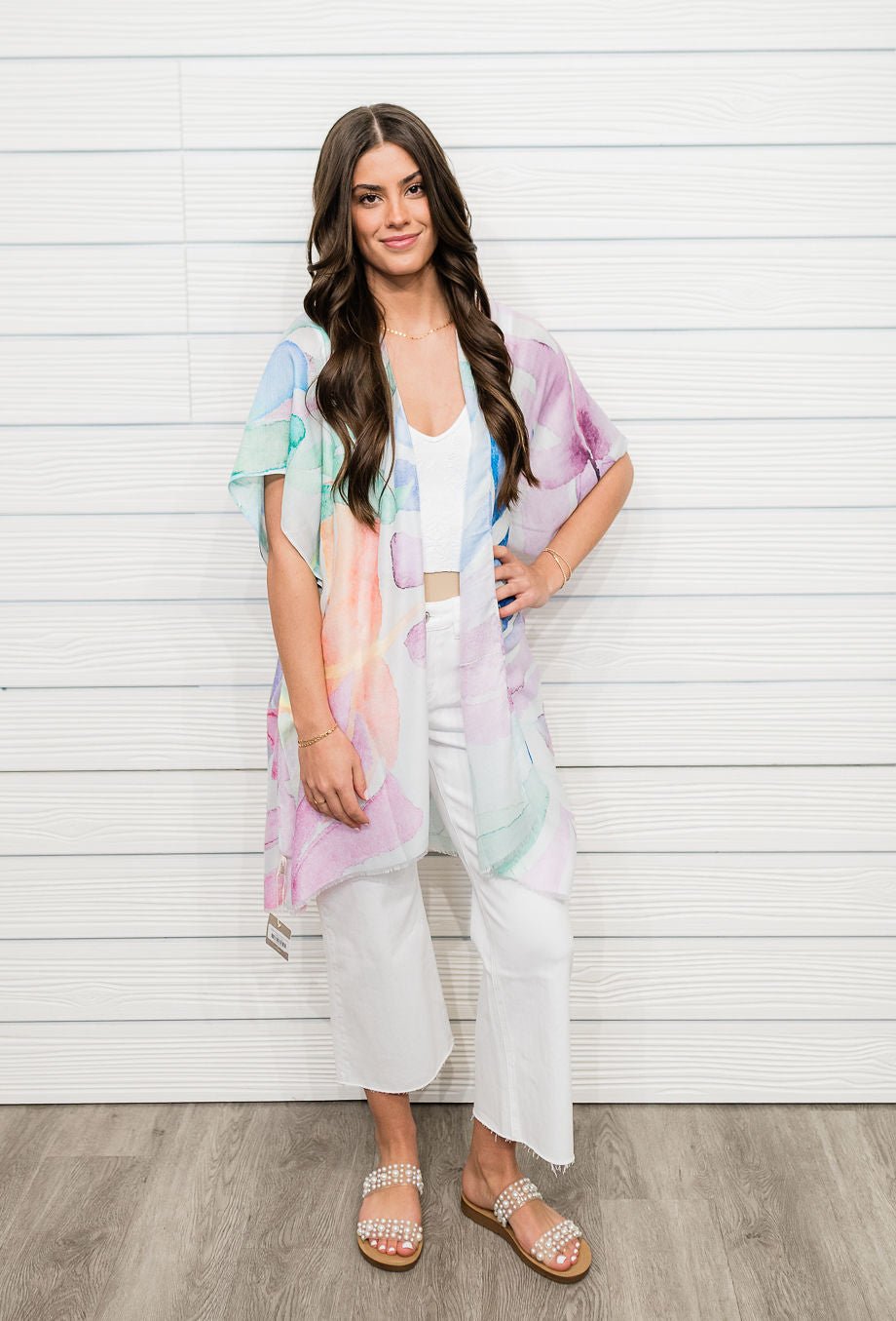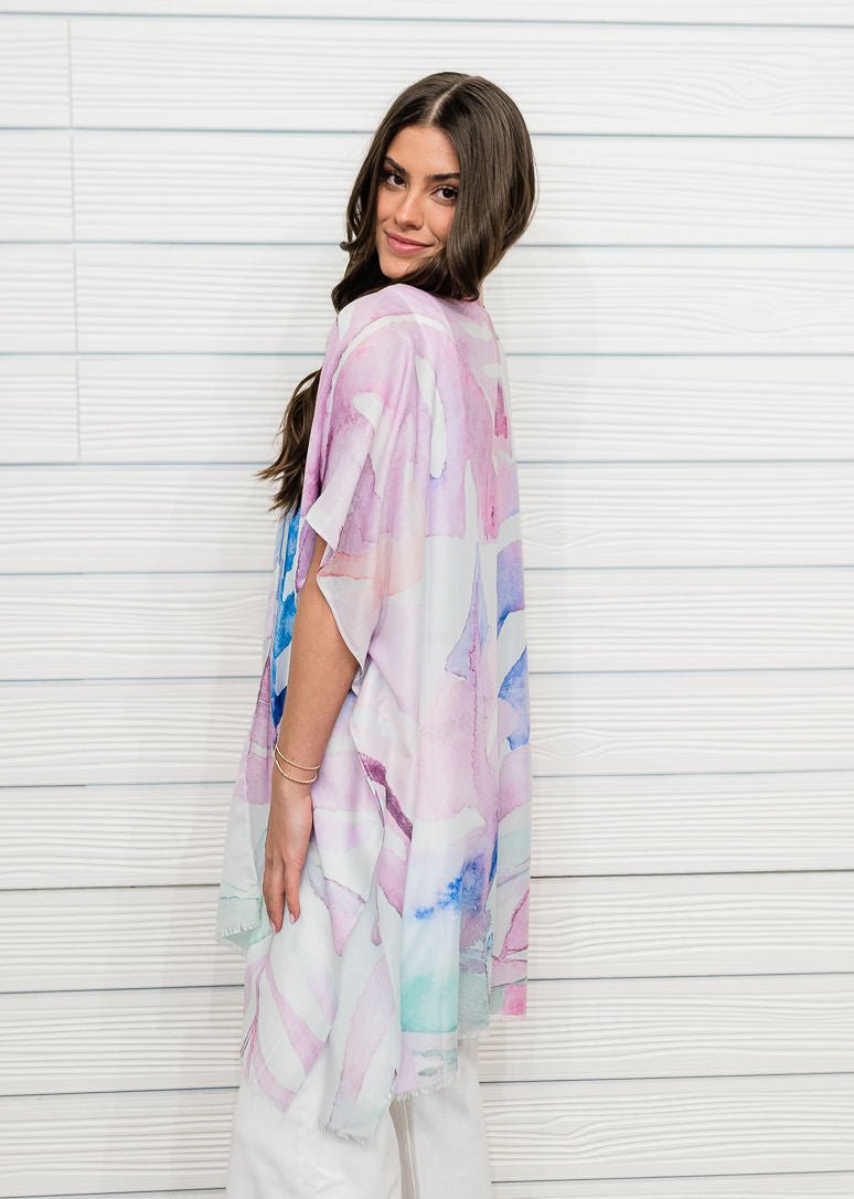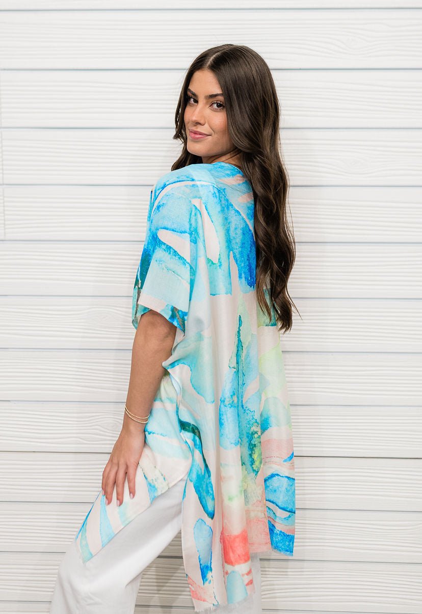 Effortlessly elevate your style, this kimono comes with a special watercolor leaves print design. Add a touch of glamour to your wardrobe with this versatile kimono, perfect for enhancing the elegance of any look.
