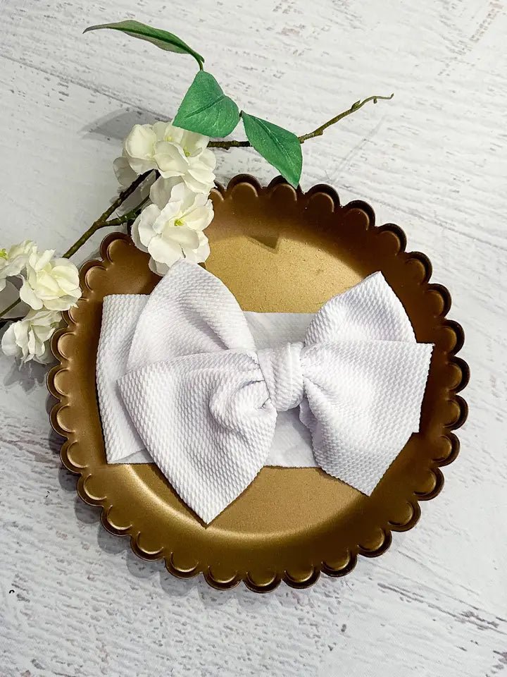Combining soft, textured fabric with two accent bows, this headband is the perfect finishing touch to take any outfit up a notch.