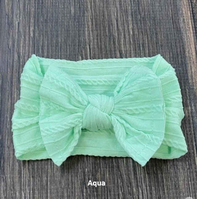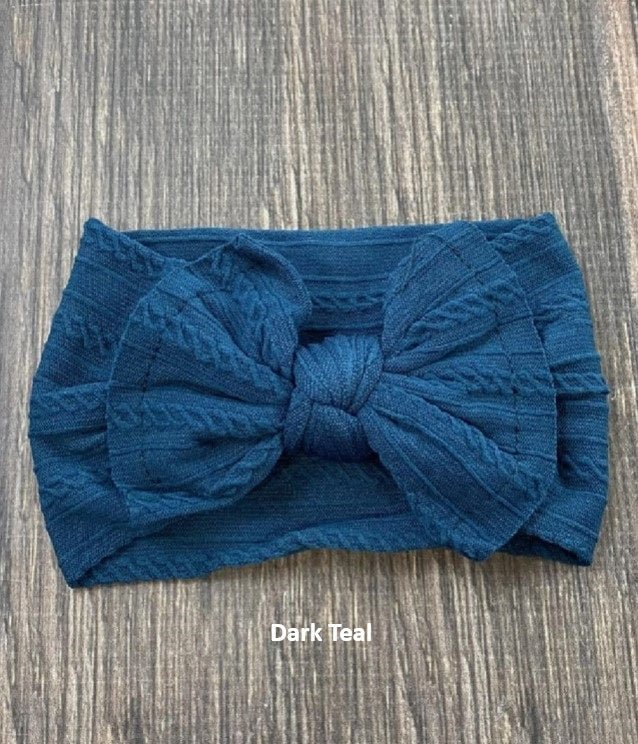 These Soft Cable Knit Knot Bow Headbands are suitable for newborns through toddlers. They are super soft and stretchy and are available in 11 fabulous colors!