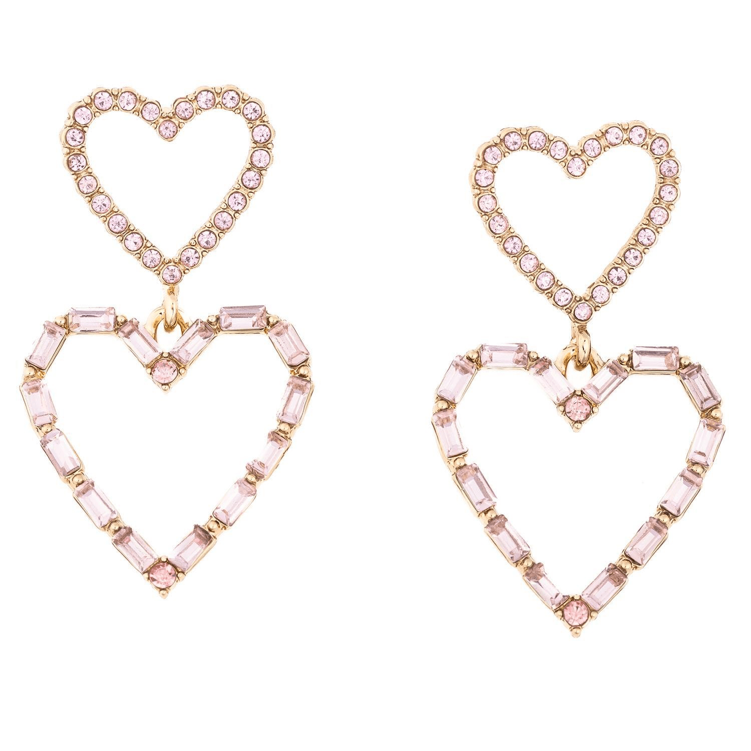 Add a touch of love and sparkle to your outfit with our Double Heart Iris Dangle Earrings by Michelle McDowell. With charming pink stones and rhinestone details, these earrings are perfect for any occasion. The elegant gold finish adds a touch of sophistication to your look. Spread the love and make a statement with these unique earrings!
