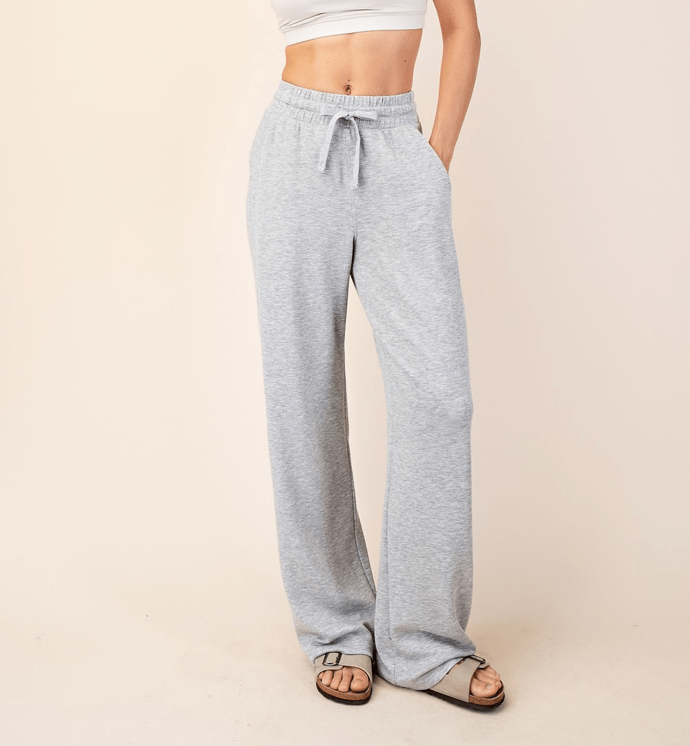 Features: - Modal Poly Span Scuba fabric - Silky smooth and Lightweight - Relaxed fit - High-rise / High-waist - Straight - Slightly Wide leg - Side pockets - Adjustable elastic waistband
