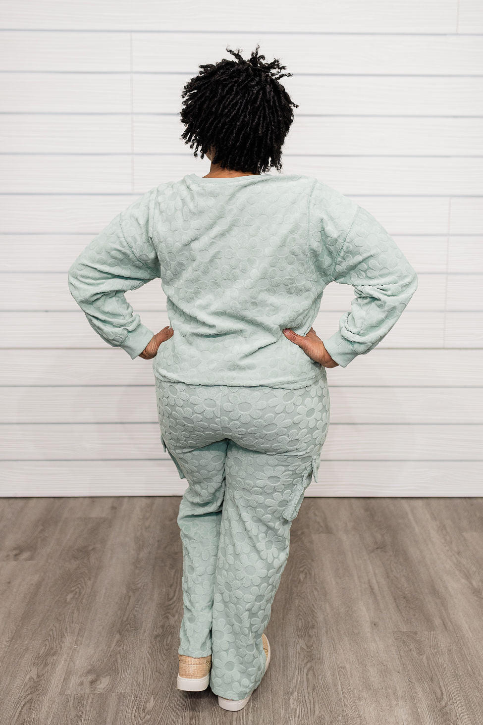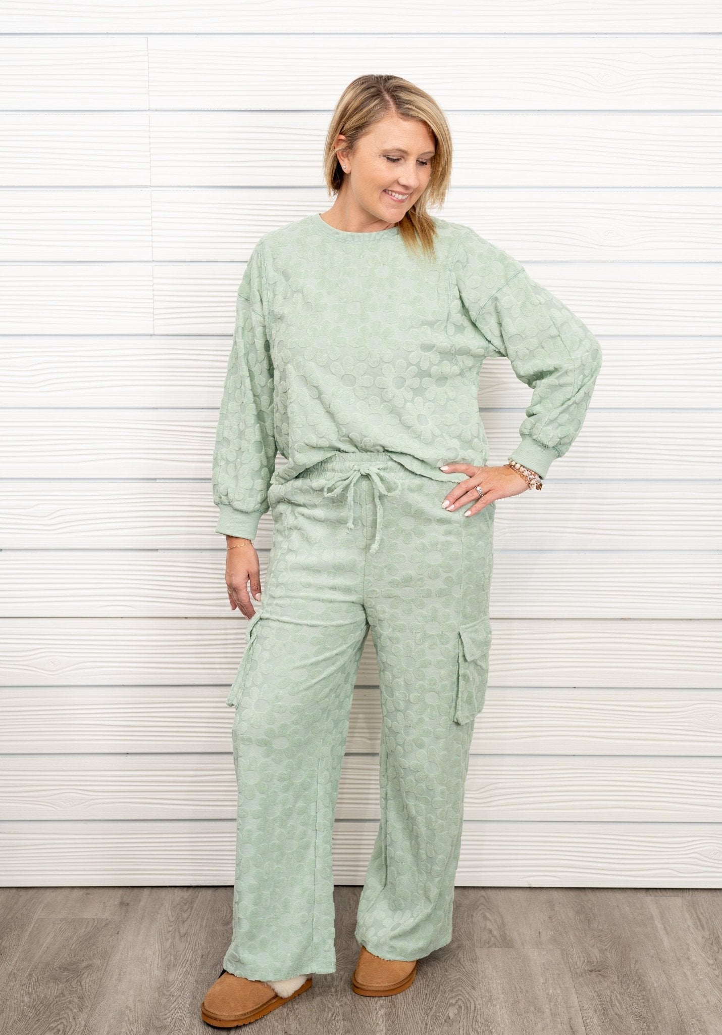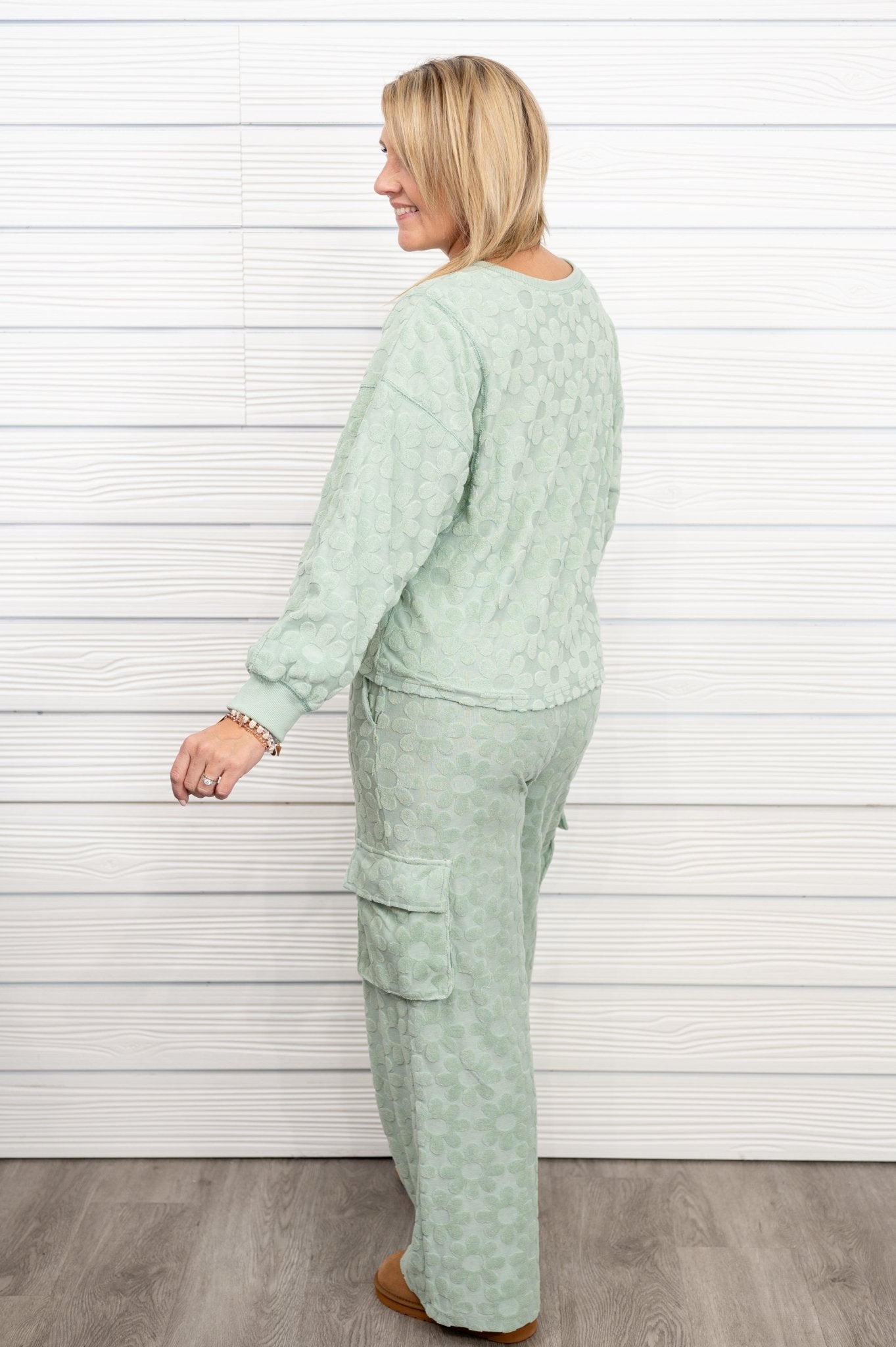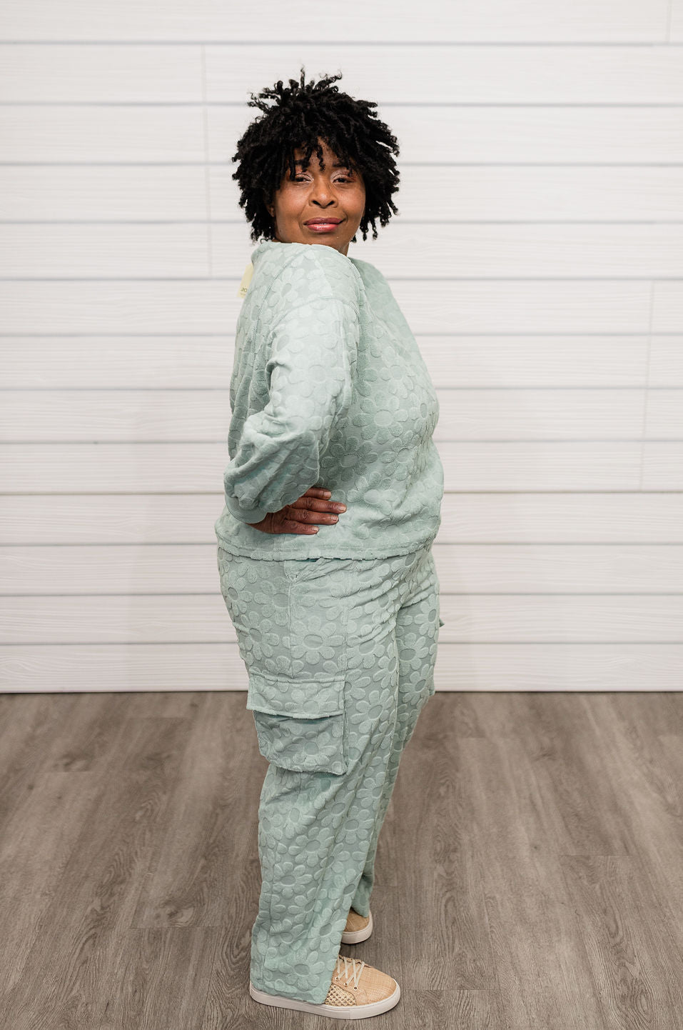 This super cute and cozy Petal Power Lounge Set features an elastic waistband with a self-tie drawstring, side pockets and a cargo pocket, and a wide leg hem. Perfect for lounging at home or running errands, this set will keep you feeling cozy and stylish. Elevate your loungewear game ladies!!