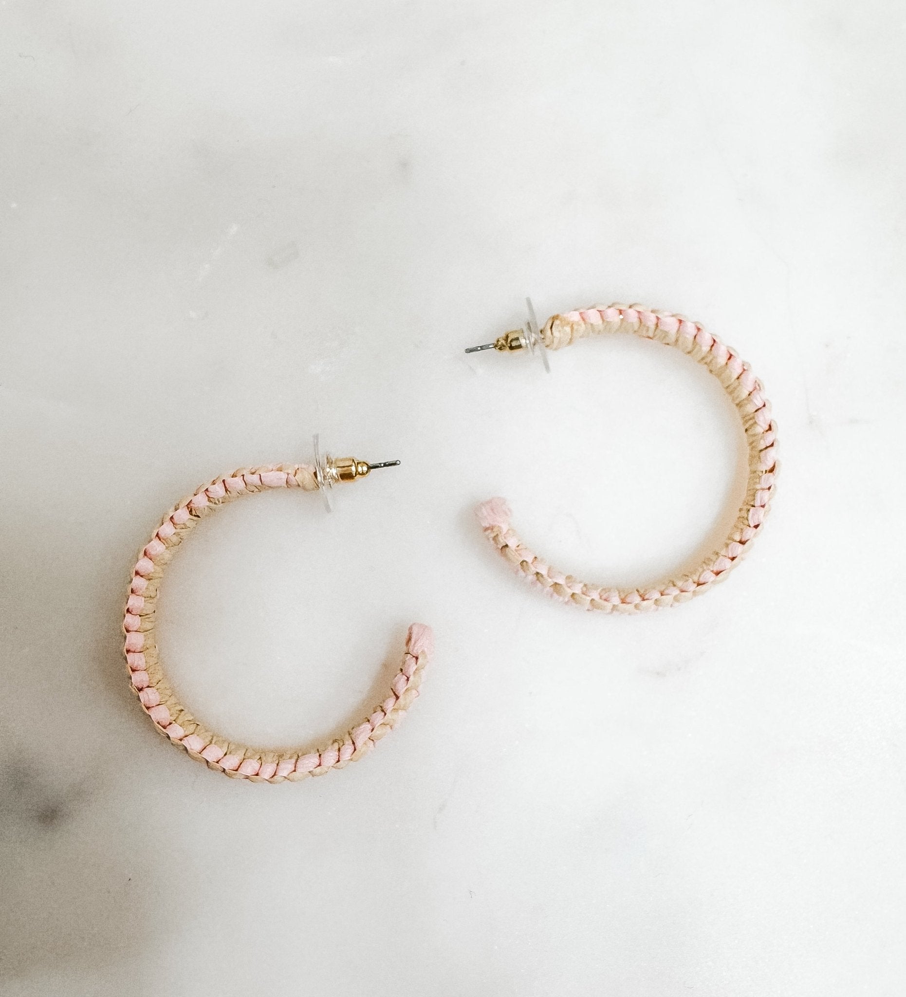 Add a touch of fun and color to your wardrobe with our Call Me Back Raffia Wrap Hoop Earrings by Meghan Browne. Available in three calming shades, these lightweight and textured earrings are the perfect accessory for any season. Call them the stars of your jewelry collection!