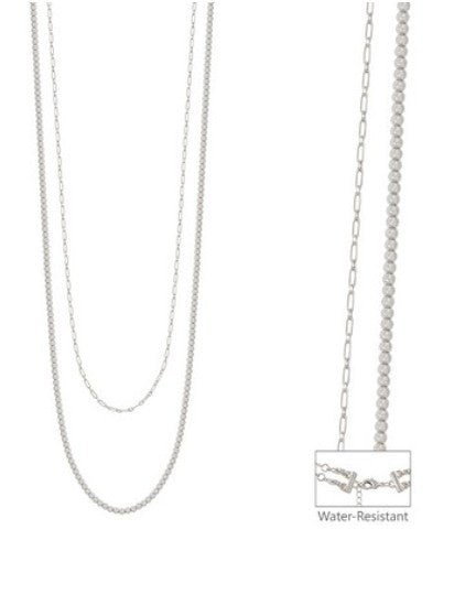 Length: 28-32in - WATER RESISTANT DOUBLE STRAND LINK AND BEAD NECKLACE