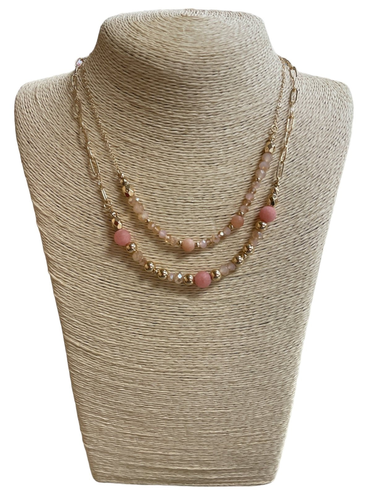 STONE & CRYSTAL SHORT LAYERED NECKLACE