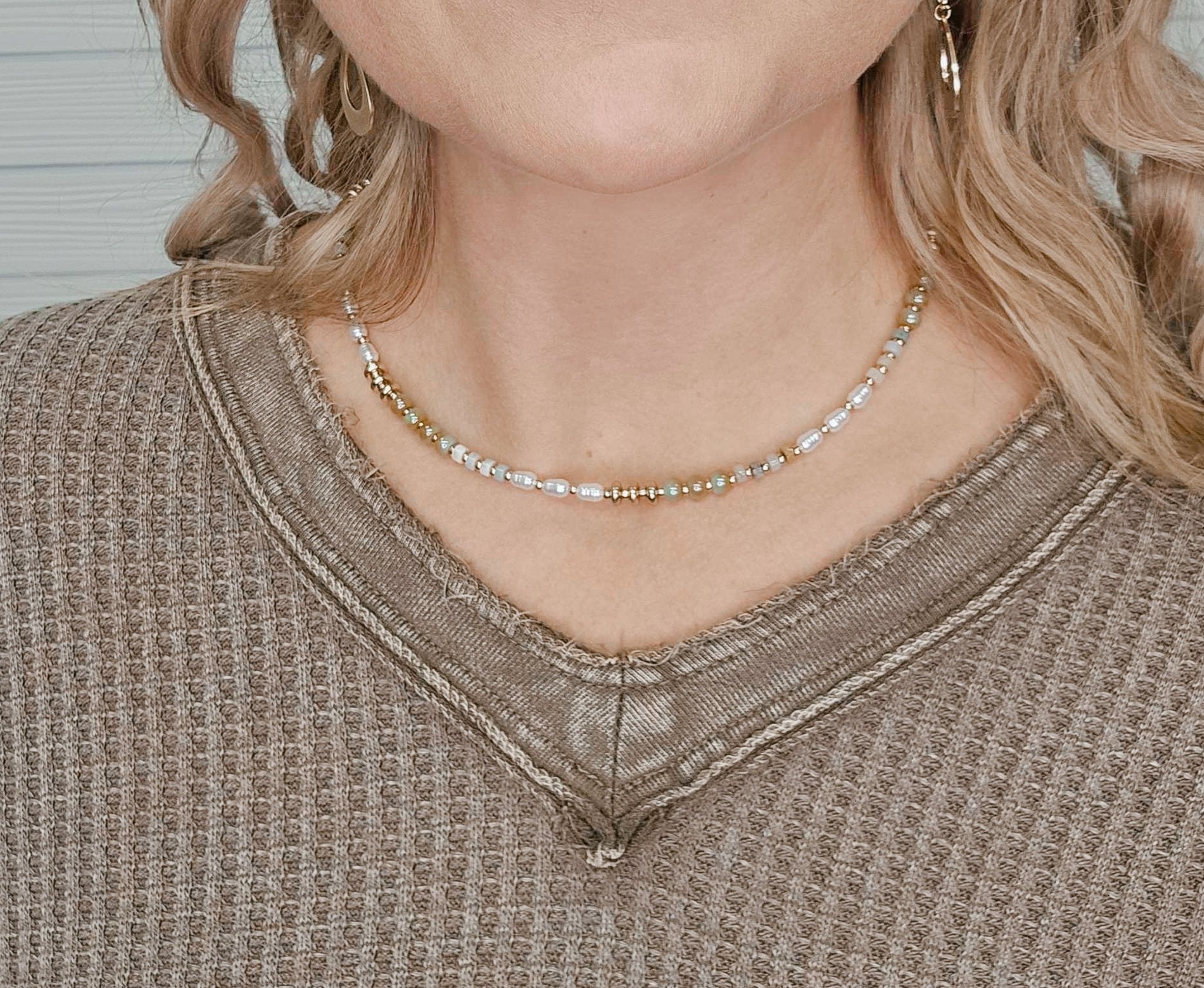 Pearl, and Gold Beaded "Candy" Beaded 16"-18" Necklace