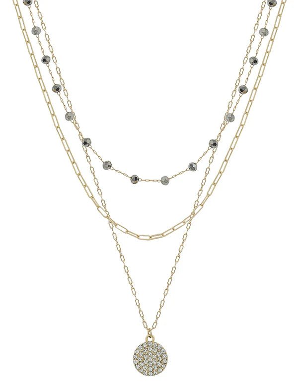 Go all in on this gorgeous with the Eva Mae Crystal Beaded Layered Necklace, featuring petite beads, pave circles and layered chains. It’s a chic yet simple way to achieve effortless style status—what's there to say no to?!