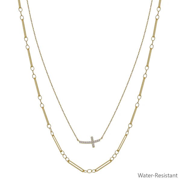 Effortlessly elevated with subtle sparkle, the Layered Cross Chain Necklace adds meaning and modern polish to your everyday look. Designed with two coordinating gold-tone chains, this piece features a delicate crystal-accent cross on the shorter layer and a sleek link chain beneath for a perfectly styled, layered finish.
