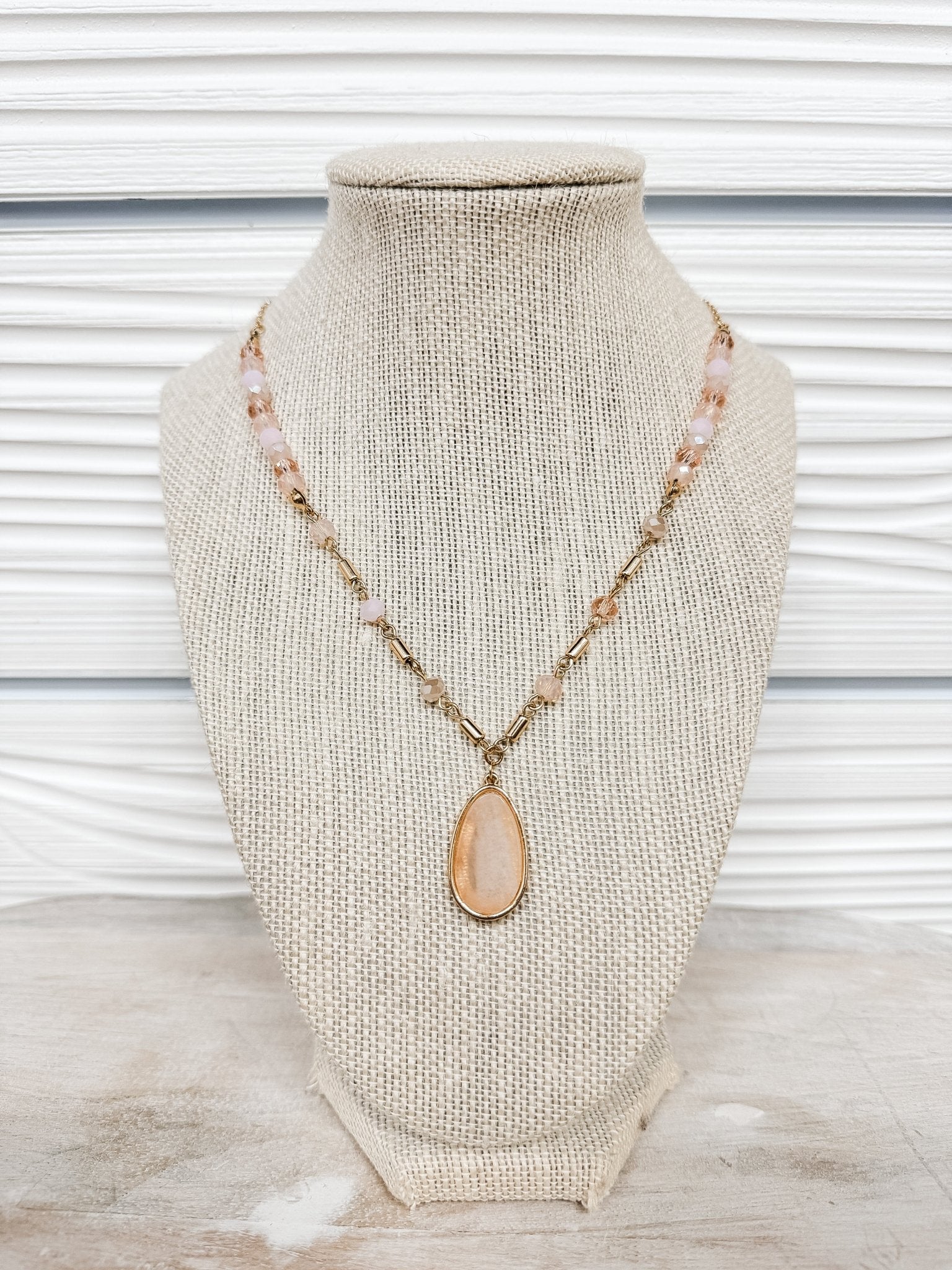 This Natural & Crystal Beaded Pendant Necklace is gorgeous! The chain detailing is so trendy we love the unique details on the chain! This necklace is going to look so good with an array of outfits for any season!