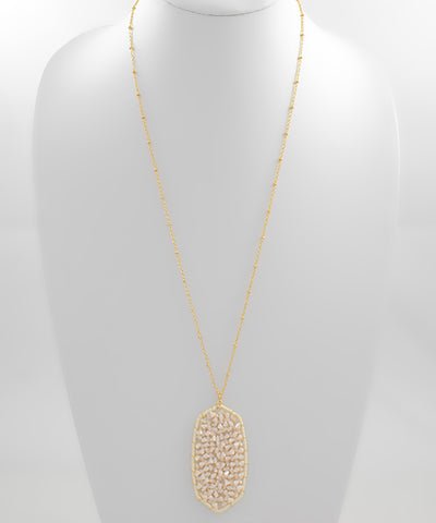 Soft, elegant, and effortlessly wearable, the Bead Glass Hexagon Pendant Necklace adds a subtle touch of shine to any look. Featuring a glass hexagon pendant accented with delicate beads, this piece brings just the right balance of modern shape and feminine detail.