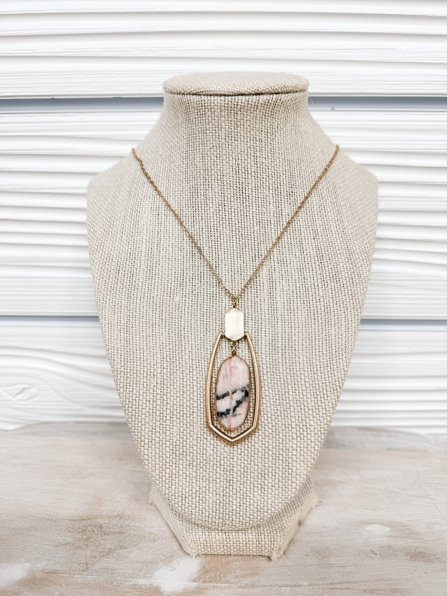 As always, you have found the perfect necklace that goes with just about anything! This versatile necklace is going to be so easy to style! The teardrop design and precious stone finishes is a look that we love! And so will you!