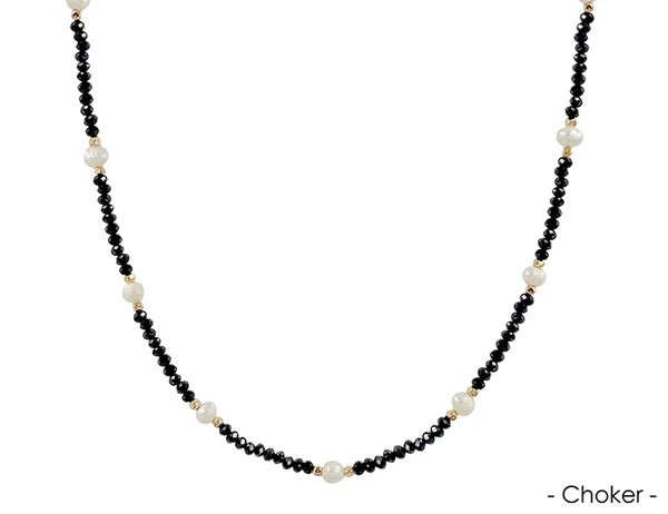 Black Crystal Choker with Pearl 14"-16" Necklace