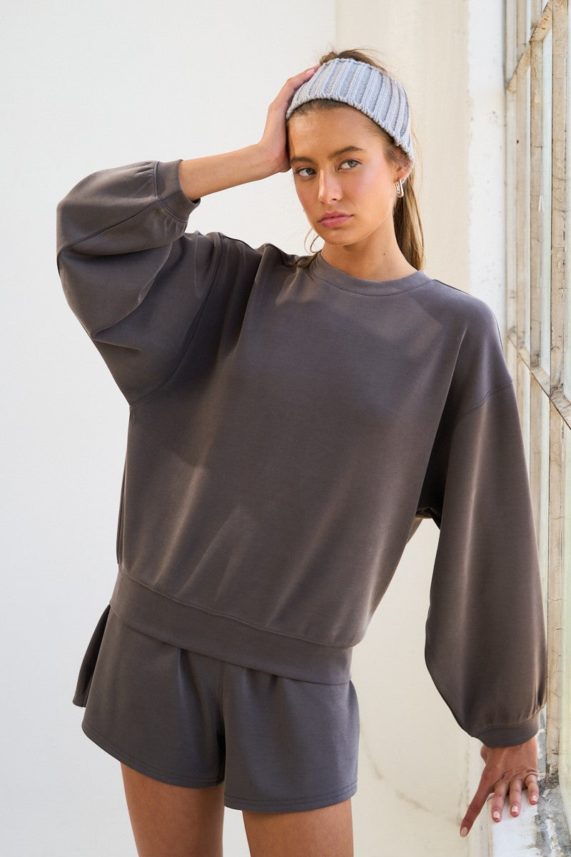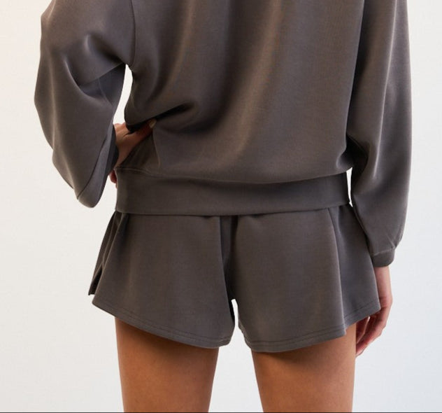Complete your look with these buttery soft modal blend lounge shorts, designed to pair perfectly with the matching sweatshirt. Crafted from a premium modal blend, they offer a smooth, breathable feel with just the right amount of stretch for all-day comfort. Featuring a relaxed fit and versatile design, these shorts are ideal for lounging, casual outings, or mixing and matching with your favorite basics.