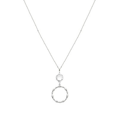 30-32in -SILVER CHAIN NECKLACE WITH CIRCULAR BAMBOO TEXTURED AND CLEAR PENDANT