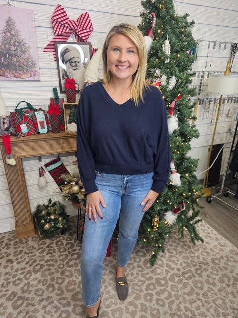 An effortlessly chic lightweight sweater that blends comfort with versatility. Featuring a relaxed dolman silhouette, deep V-neckline, and wide ribbed hem and cuffs, this pullover drapes beautifully for a flattering, easy fit. Perfect for layering across seasons - pair it with denim for a casual day look or elevate it with trousers for a polished finish.