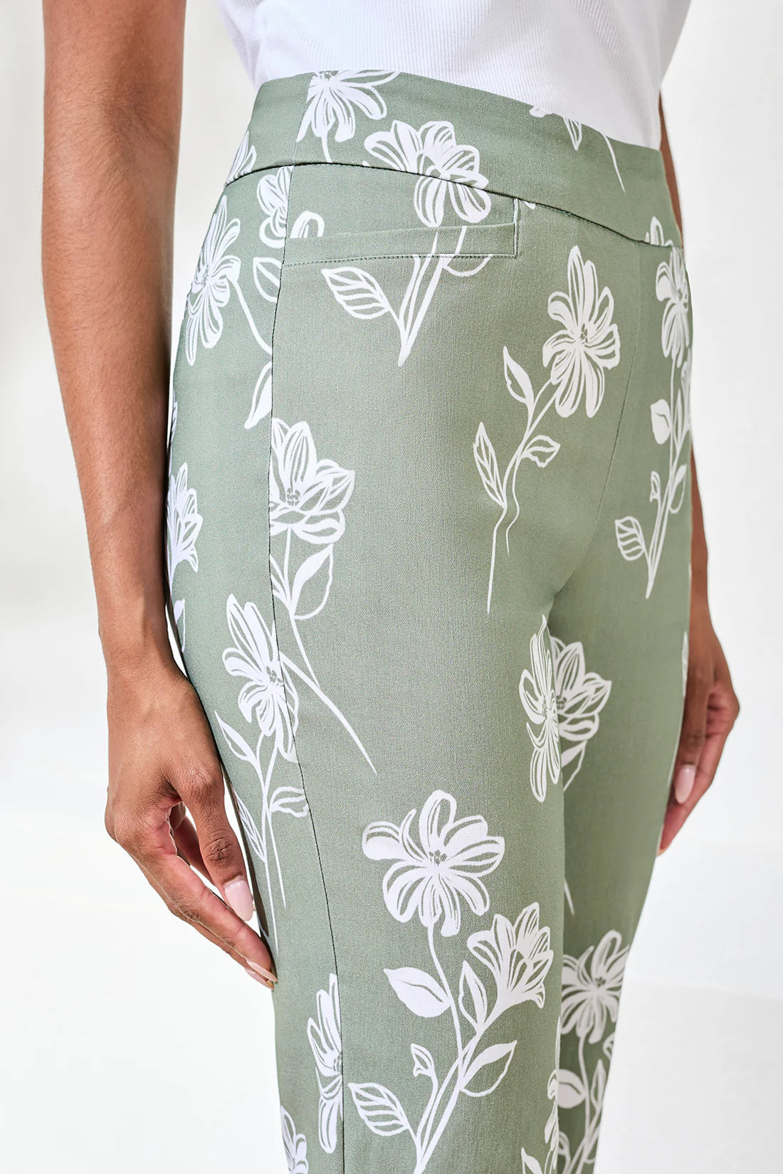Polished yet comfortable, these TRIBAL pull-on capri pants are designed to move with you while keeping a sleek, tailored look. Crafted in stretch bengaline fabric, they feature a straight, cropped leg and a smooth pull-on waistband for effortless wear. The subtle floral print adds just the right touch of personality, making them perfect for everyday styling or dressing up with ease.