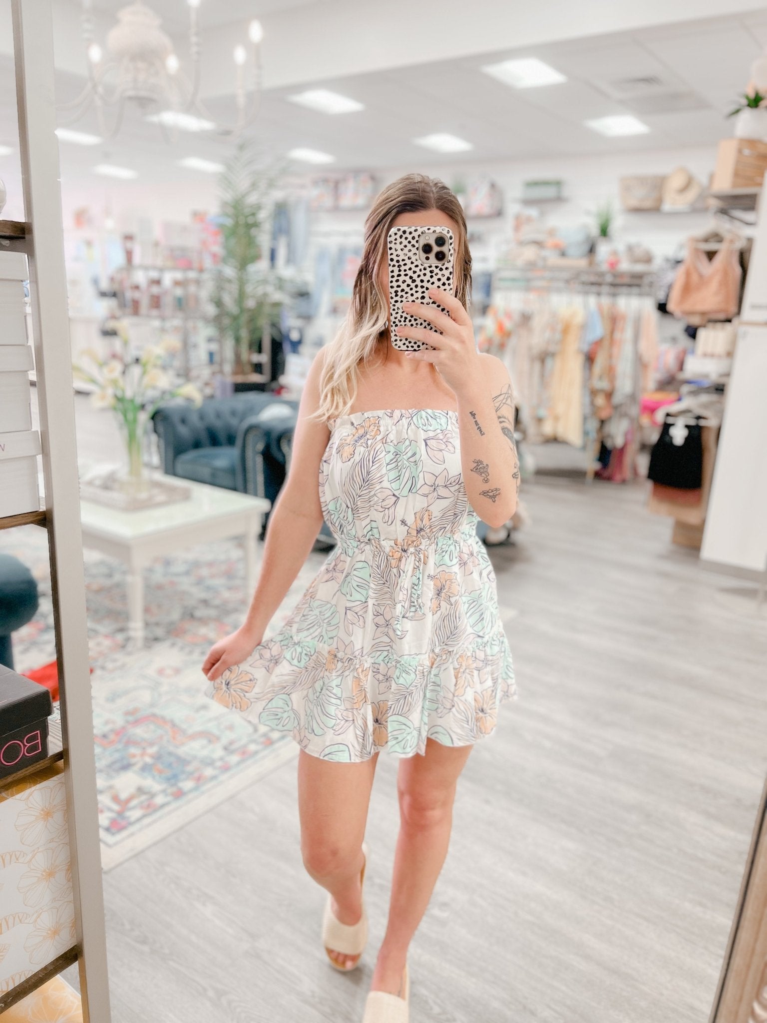 I Found Paradise, when I slipped on this lively printed tube dress! I immediately felt as if I could climb into a hammock and enjoy the beautiful sunset. Doesn't that sound like the perfect evening?