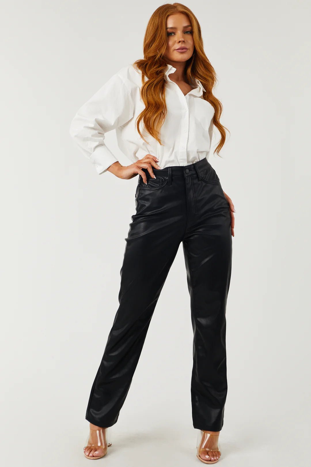 HIGH WAIST TUMMY CONTROL BLACK FAUX LEATHER STRAIGHT
