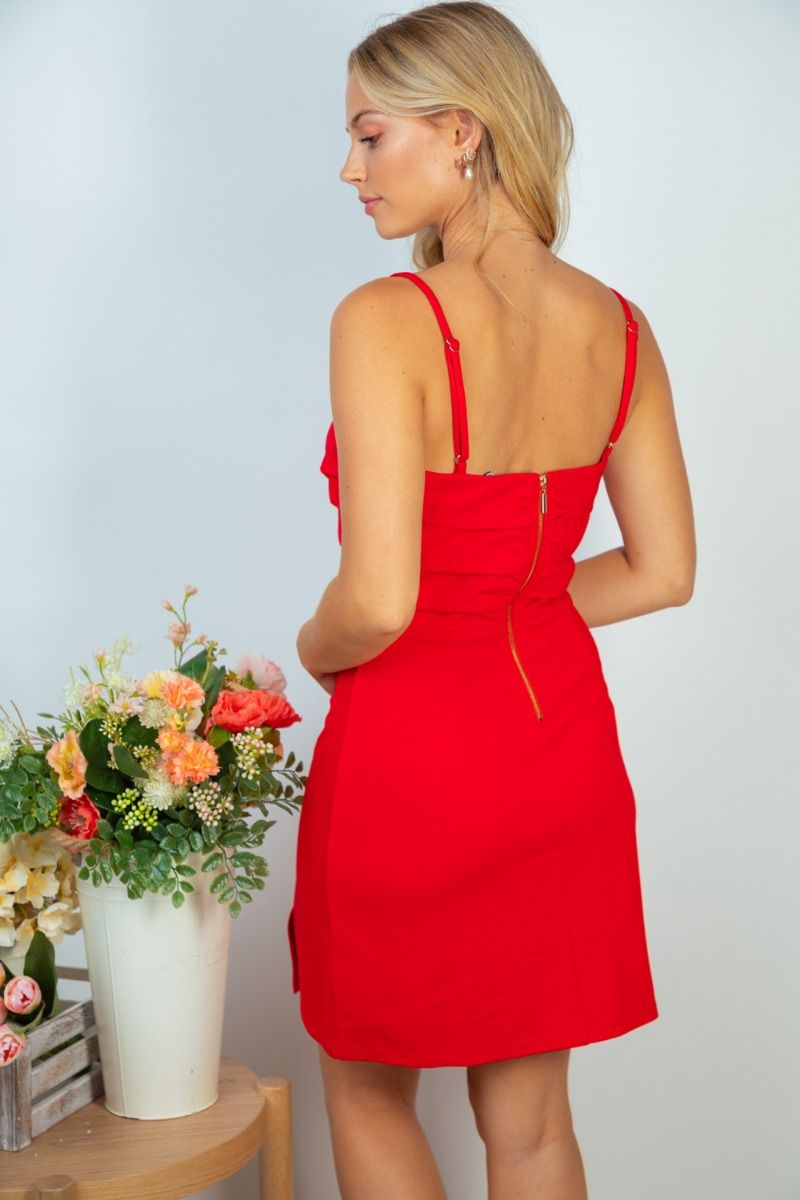 A sleeveless solid woven dress with a square neck featuring a pleated bodice and a true-to-size fit.