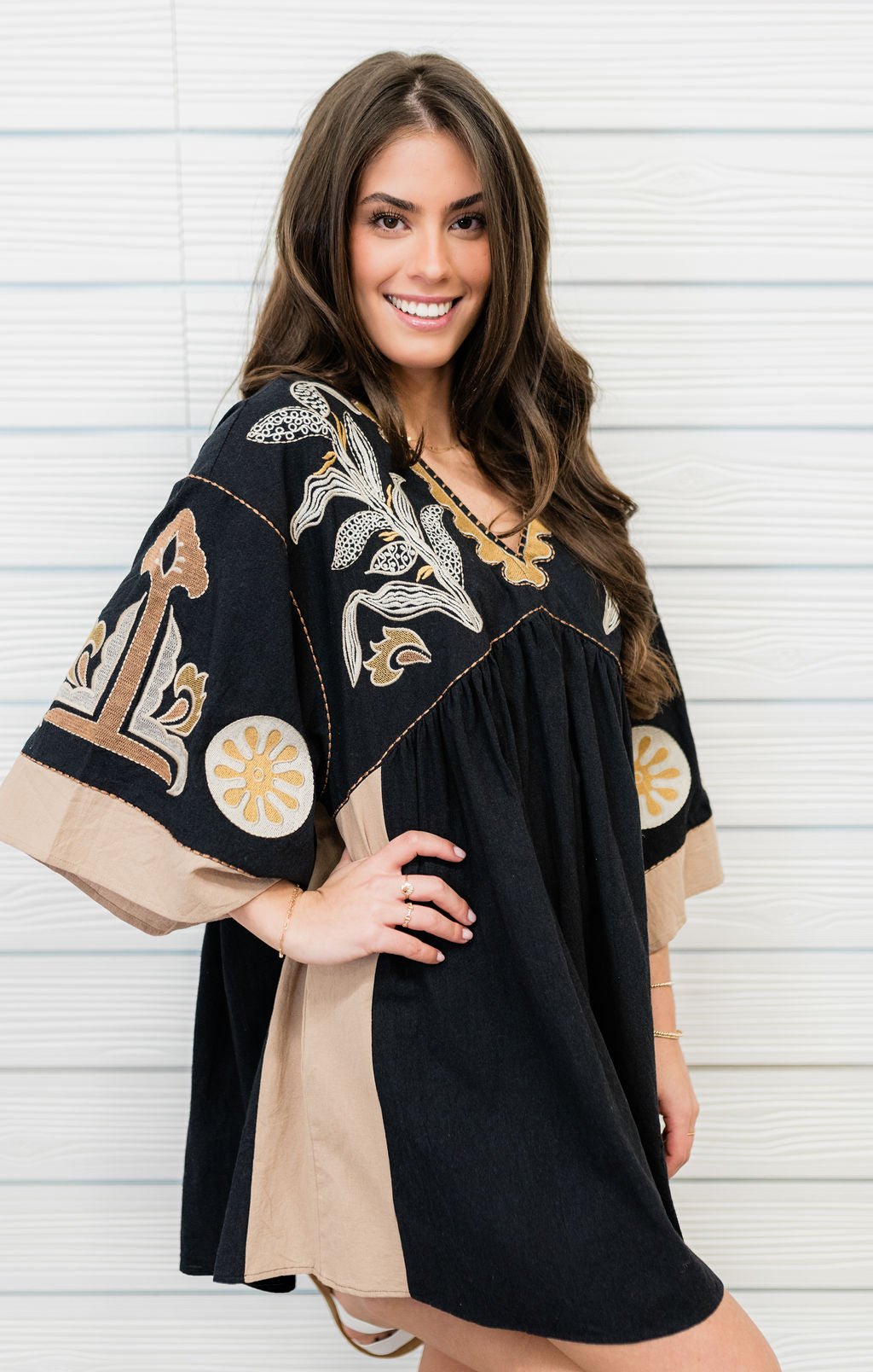 Be the epitome of elegance and playfulness in our Harmonic Bliss Embroidered Mini Dress. This dress features intricate embroidery and a mini length, perfect for any occasion. Get ready to turn heads and make a statement with this unique and charming dress!