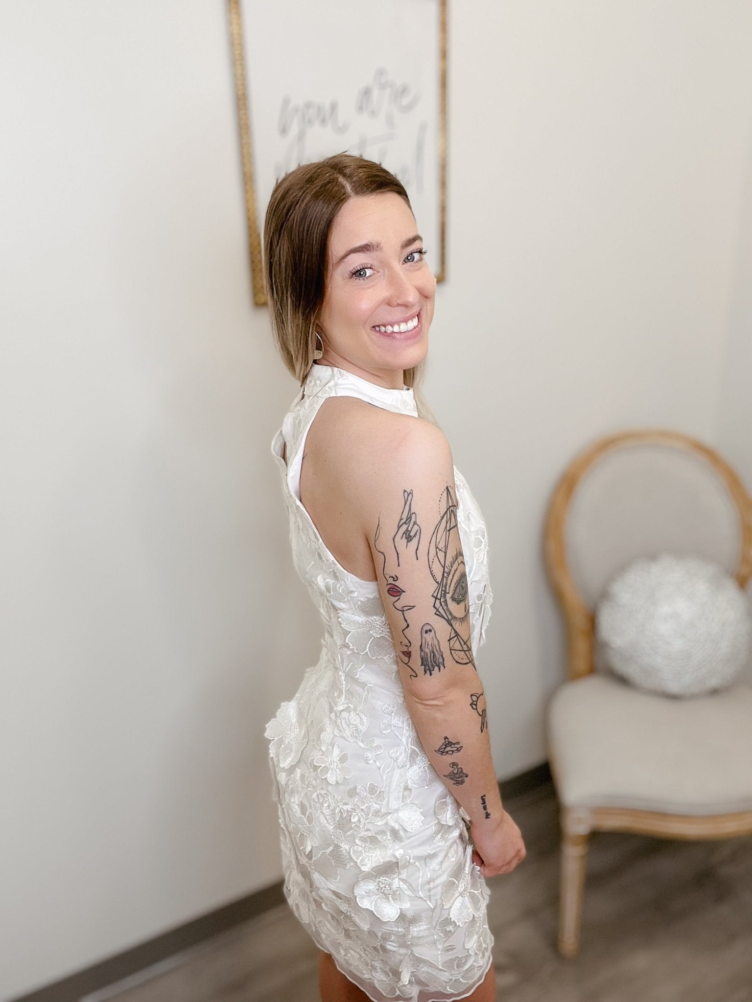 When you graced the room wearing this lovely white dress, it was truly an Ideal Moment for you! Every girl dreams of finding a look to show on the outside, all that glows purely on the inside!