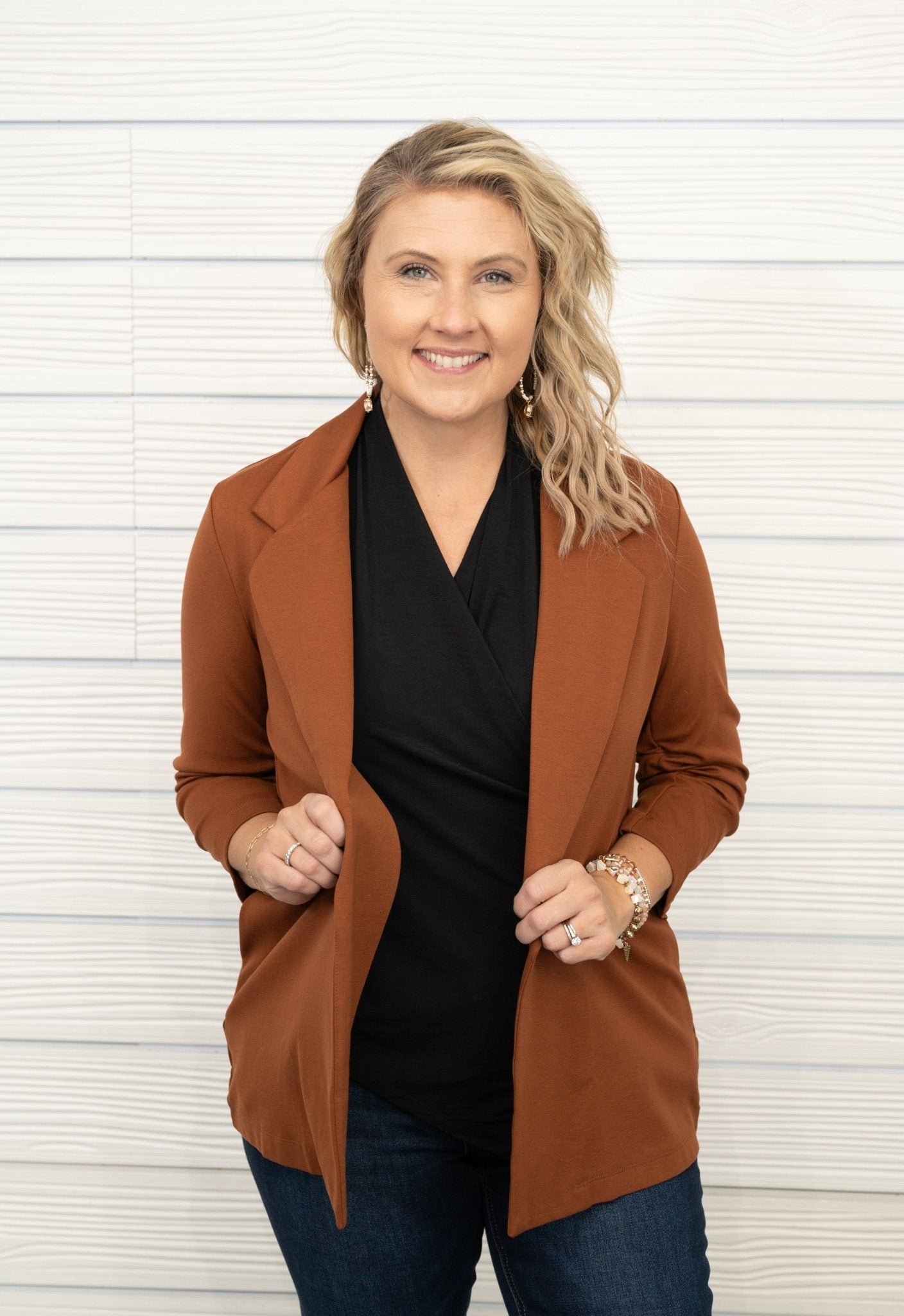 Ashley has paired this amazing top with our Dear Scarlet Magic Blazer!