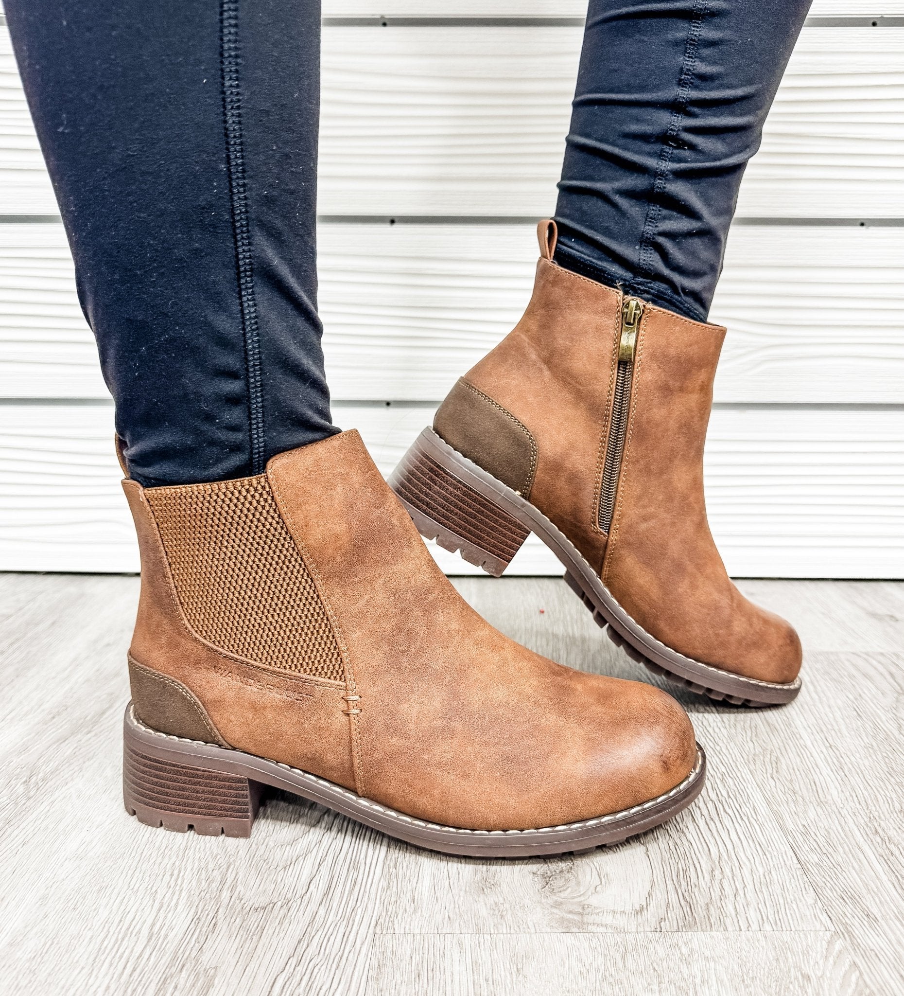A casual gored slip-on boot on our new rugged outsole and great looking 2-inch heel. With side zipper and easy on back pull too.