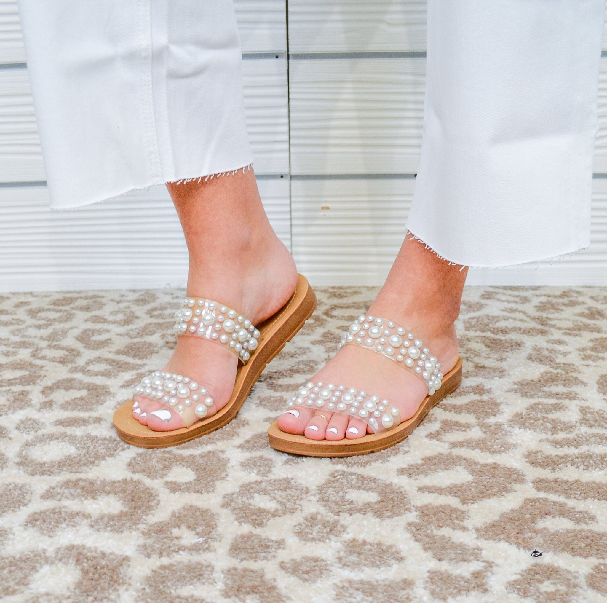 Meet Double Take - Clear Pearls, the cutest sandal around town! Its gold accents add a touch of glam while the lightweight design keep you on your feet all day. Don't take our word for it - give it a try and see for yourself!
