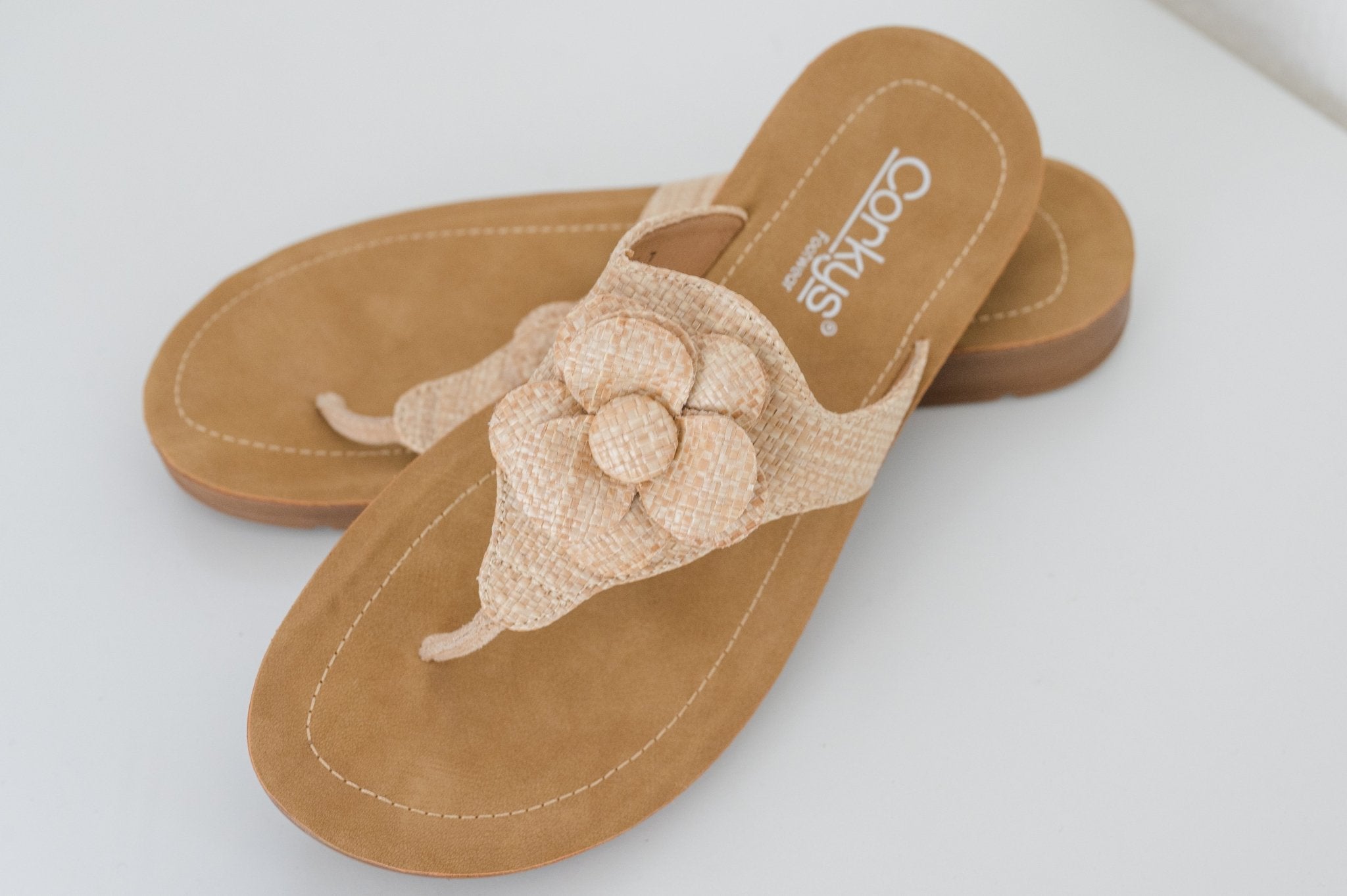Step into effortless charm with these Corkys So Delish Sandals, a must-have blend of comfort and feminine flair! Designed with a lightweight and flexible sole, these sandals provide all-day wearability while adding a chic twist to your casual looks. Featuring a classic thong flip-flop style, they’re elevated by a gorgeous 3D floral accent on the upper, making them a standout in your summer wardrobe.