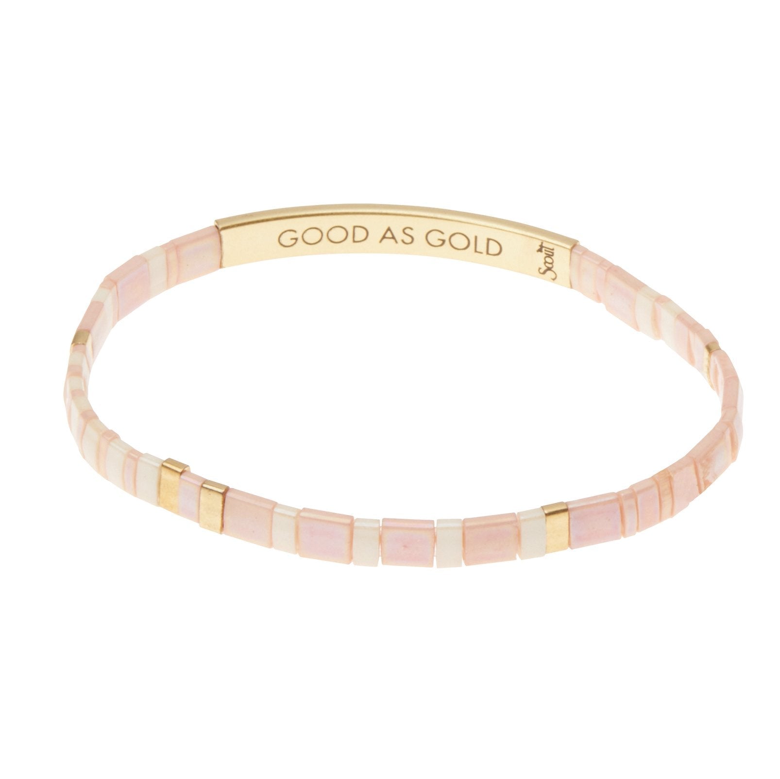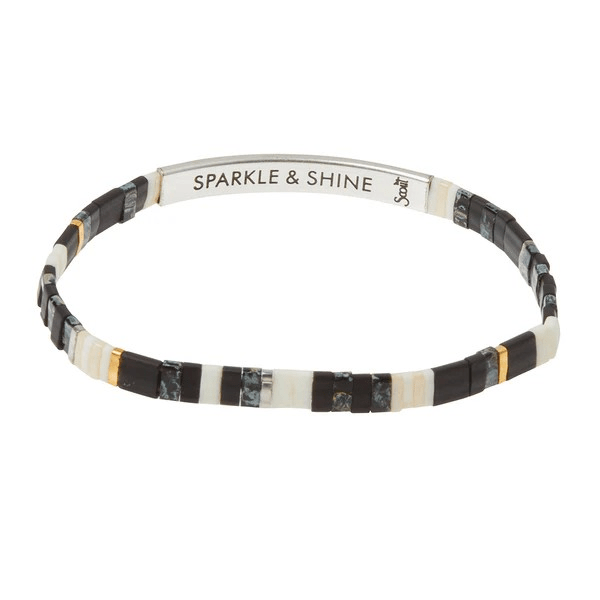Share good intentions with our sleek Japanese glass Miyuki bracelets. Playful combinations of matte and pearlescent beads are strung up with empowering messages.