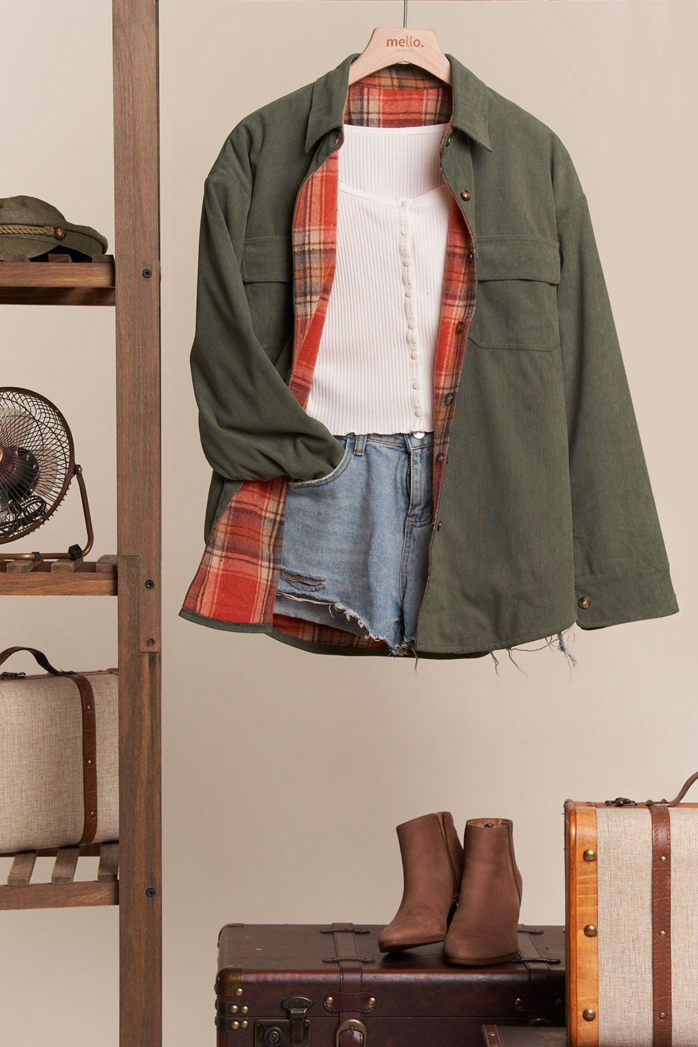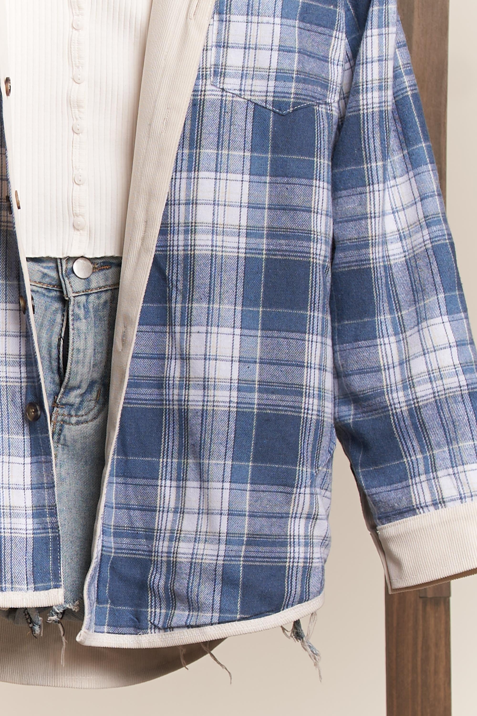 Reversible Corduroy and Plaid Button Down Shirt Jacket