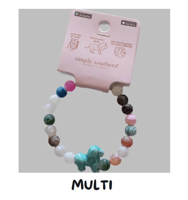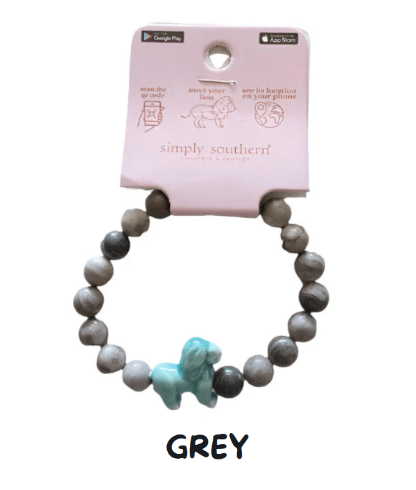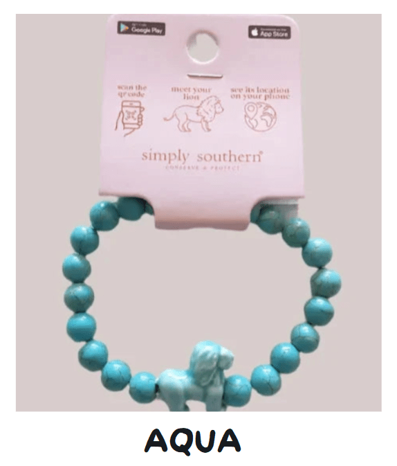 The Simply Southern Lion Tracking Bracelet, also known as the Excursion Bracelet, is a bracelet that comes with a Lion Tracking Card that allows you to follow a real Lion's journey. The bracelet is made of crushed stone and is one size fits most. You can access the interactive tracking map by scanning the QR code on the card that comes with the bracelet.