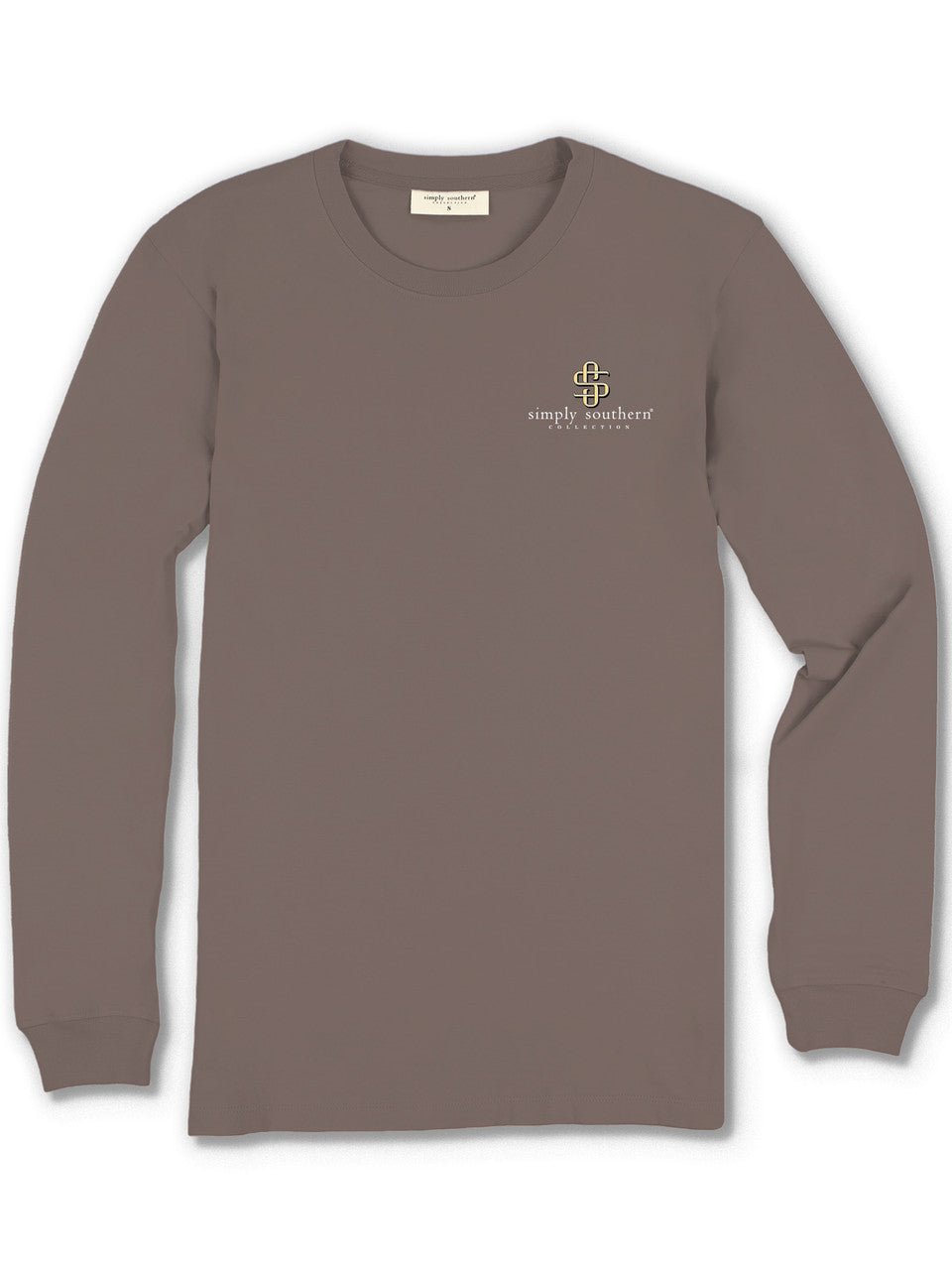 Mocha long sleeve shirt with the phrase 'Wild hearts can't be broken' and a horse and cactus framed with rope. Simply Southern logo below, on left chest, and along right sleeve. Unisex sizing.