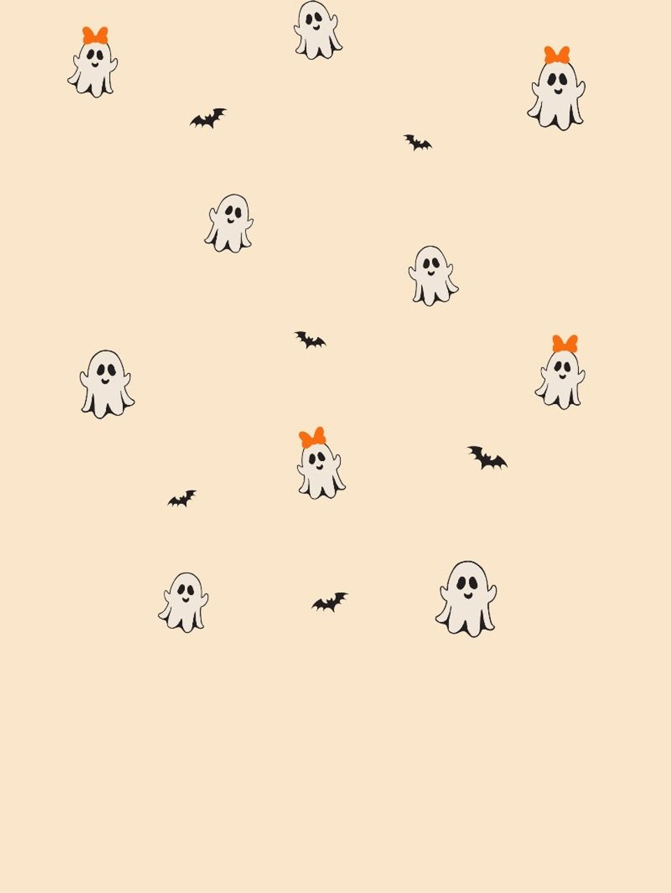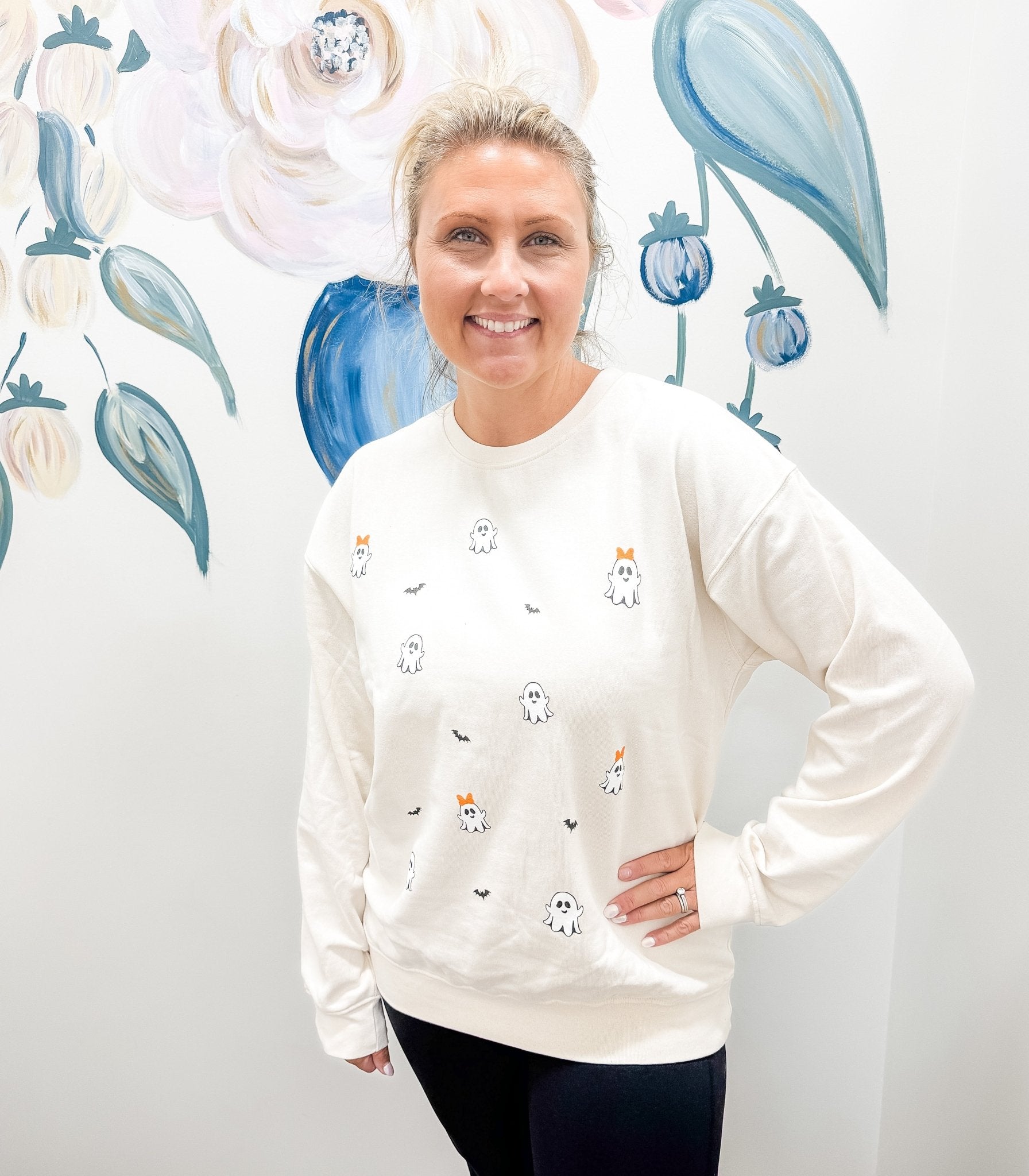 Sand long sleeve crew with ghosts and bats scattered over the front.