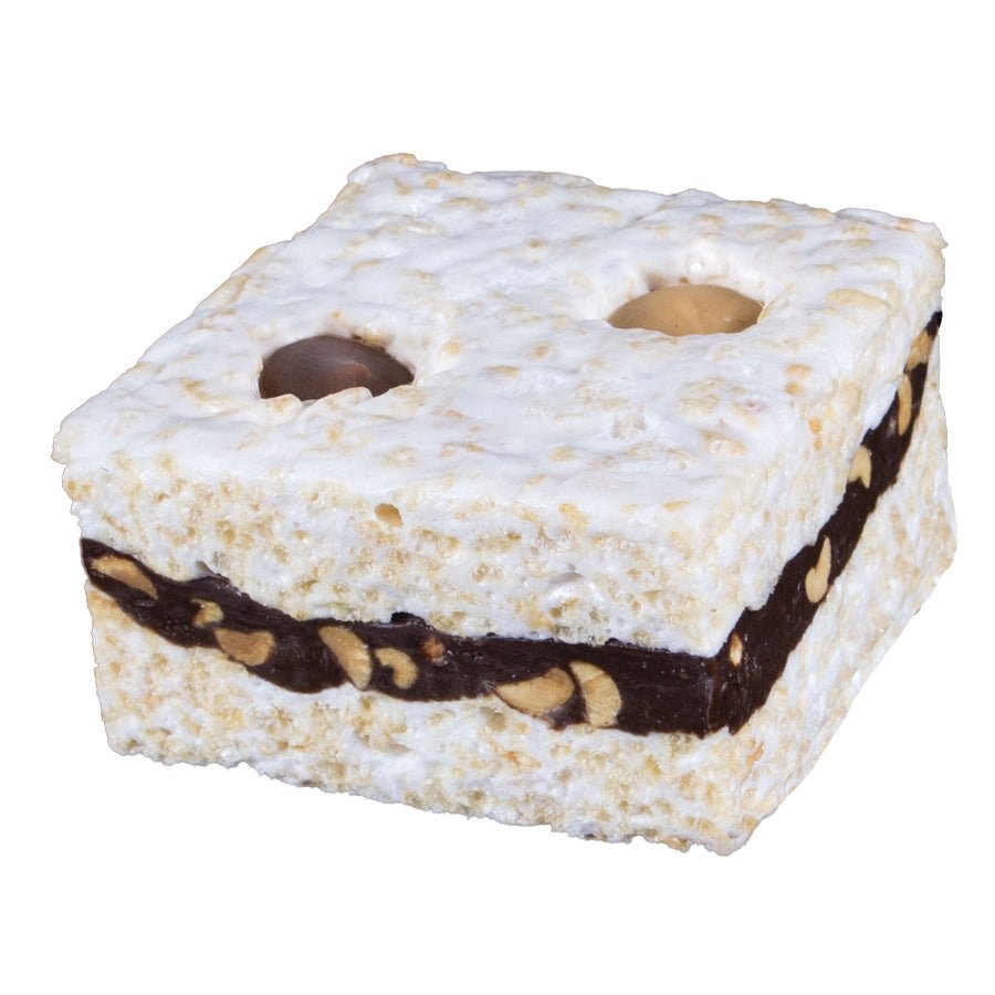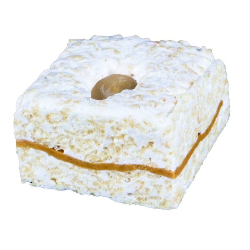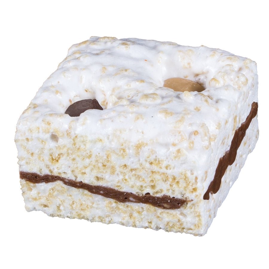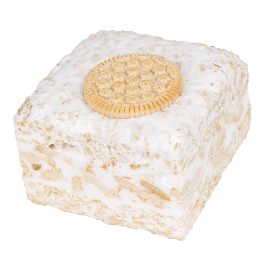 Gourmet marshmallow rice Crispycake with America's favorite cookies and cream generously packed into the middle of the cake and for extra measure, if you want to eat the top of this cookie you'll find one on top of the cake! This is truly one of The Crispery's top sellers! One bite and you will discover the reason why. The marshmallow goodness with rice crispy crunch combined with the cookies and cream added throughout the cake makes this one of the best snacks ever created!