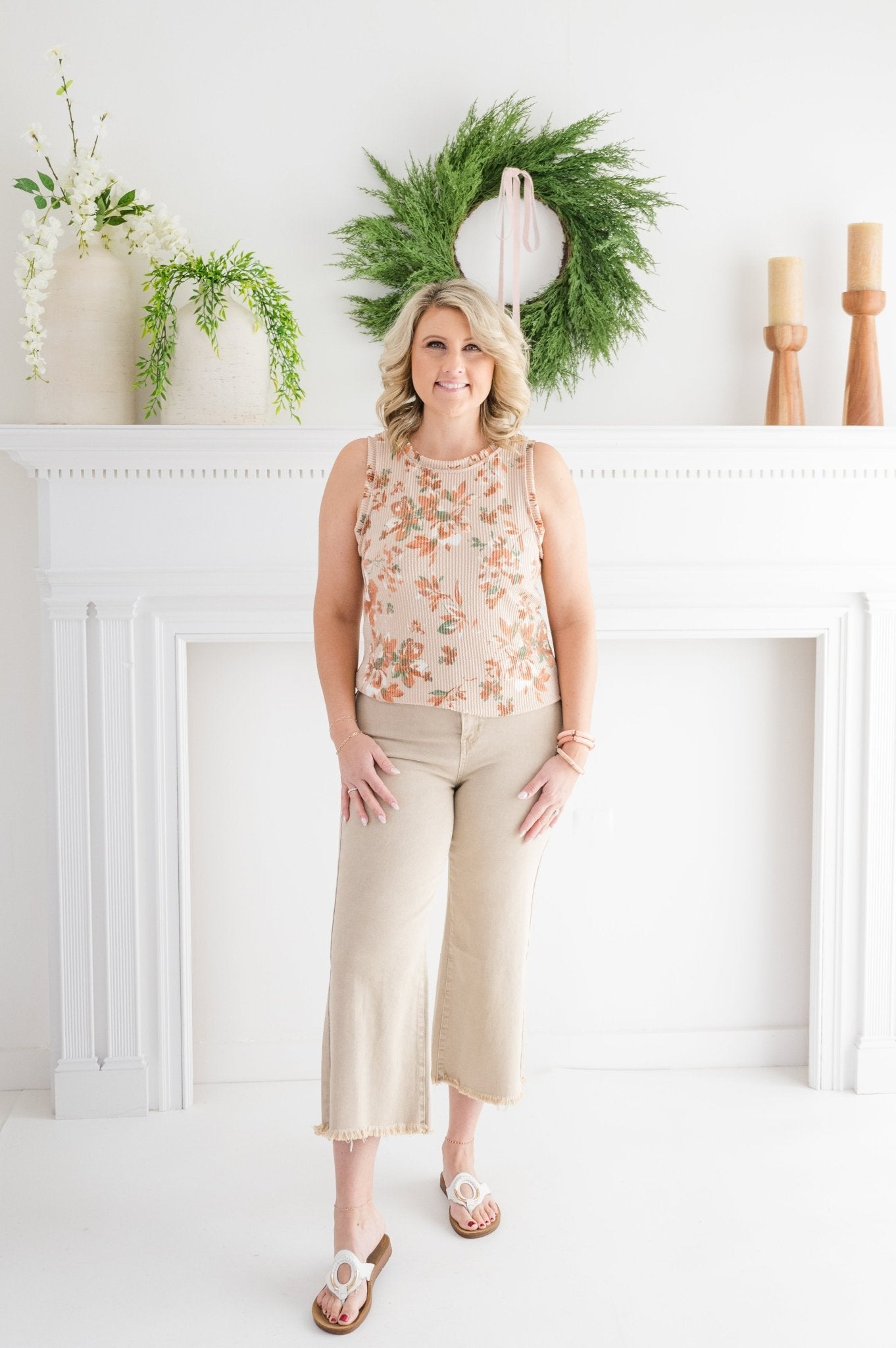 Bloom with effortless charm in the Devotional Grace Sleeveless Floral Top. Lightweight and breezy, this flirty sleeveless top features a delicate floral print that’s perfect for sunny days, brunch dates, or weekend adventures. Feminine, carefree, and endlessly chic—it’s the kind of top that turns everyday moments into a style statement.
