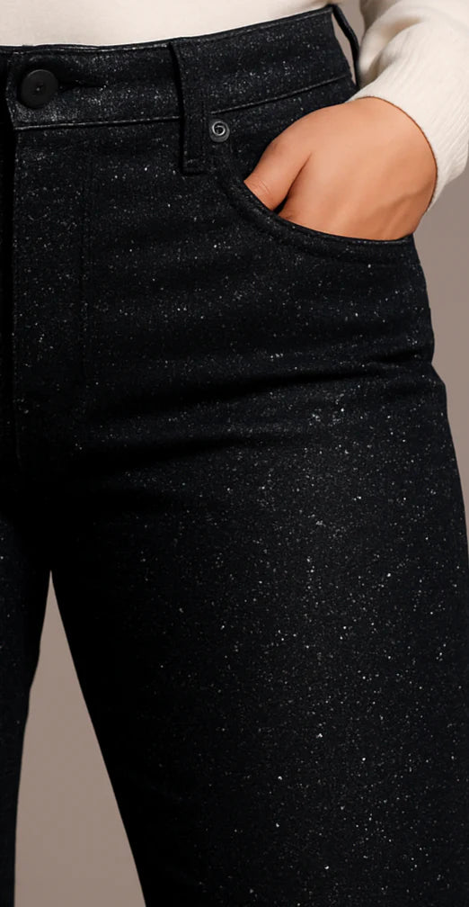 Make a bold statement in these slim-leg pants, crafted from glitter bengaline fabric for a luxurious, shimmering finish. Featuring back seam details that add structure and elongate the leg, the pull-on waist ensures effortless wear. The ankle-length cut creates a sharp, contemporary silhouette.