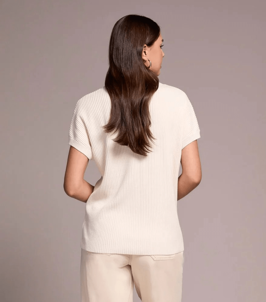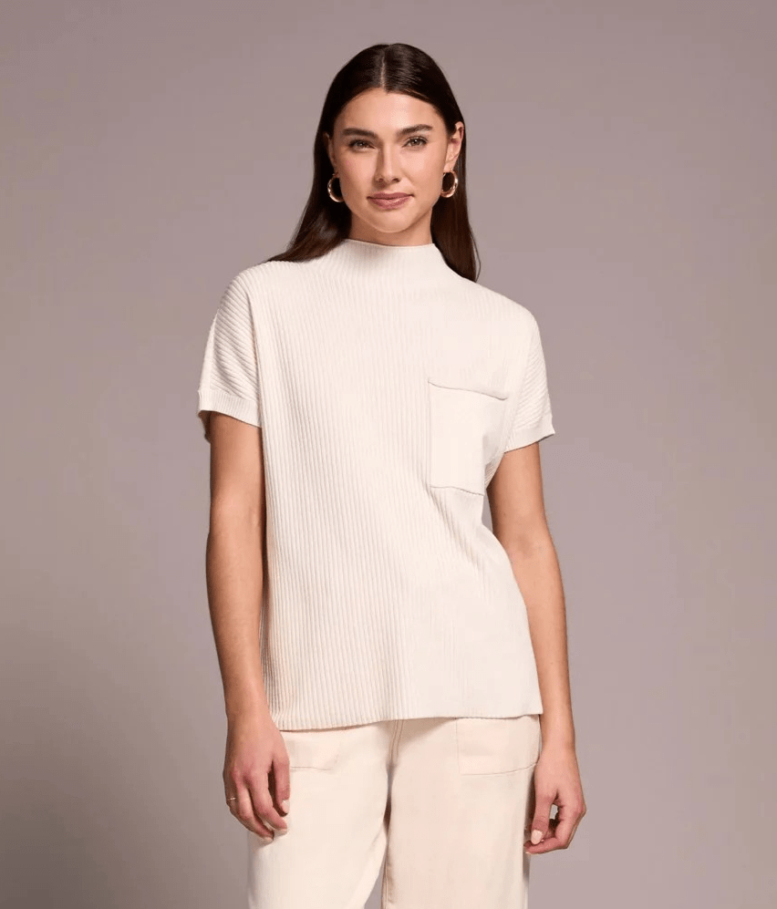 Step into transitional elegance with this sweater, designed with extended short cap sleeves that balance sophistication and ease, perfect for those crisp days ahead. The soft cotton blend keeps you comfortably breathable, while the mock neckline elevates the look with a touch of refinement.