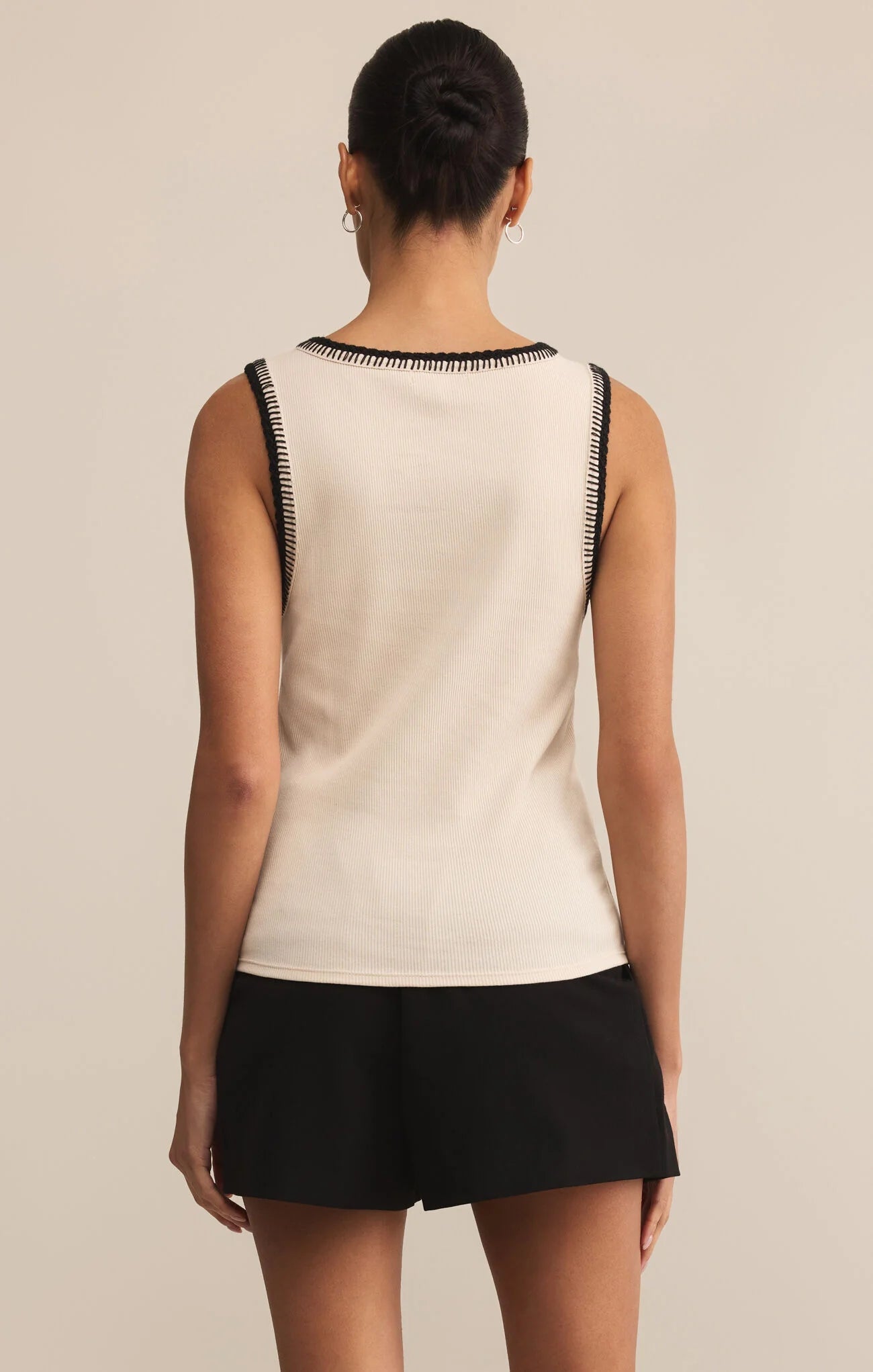 The Social Whipstitch Tank is the perfect blend of simplicity + style. With its sleeveless design + rounded neckline, this ribbed tank offers a fitted silhouette that’s flattering + comfortable for warmer days. The wide, bra-friendly straps and contrast stitching along the neckline + arm openings add unique details that elevate this basic. In a neutral hue, it’s the ultimate versatile piece to layer or wear on its own.