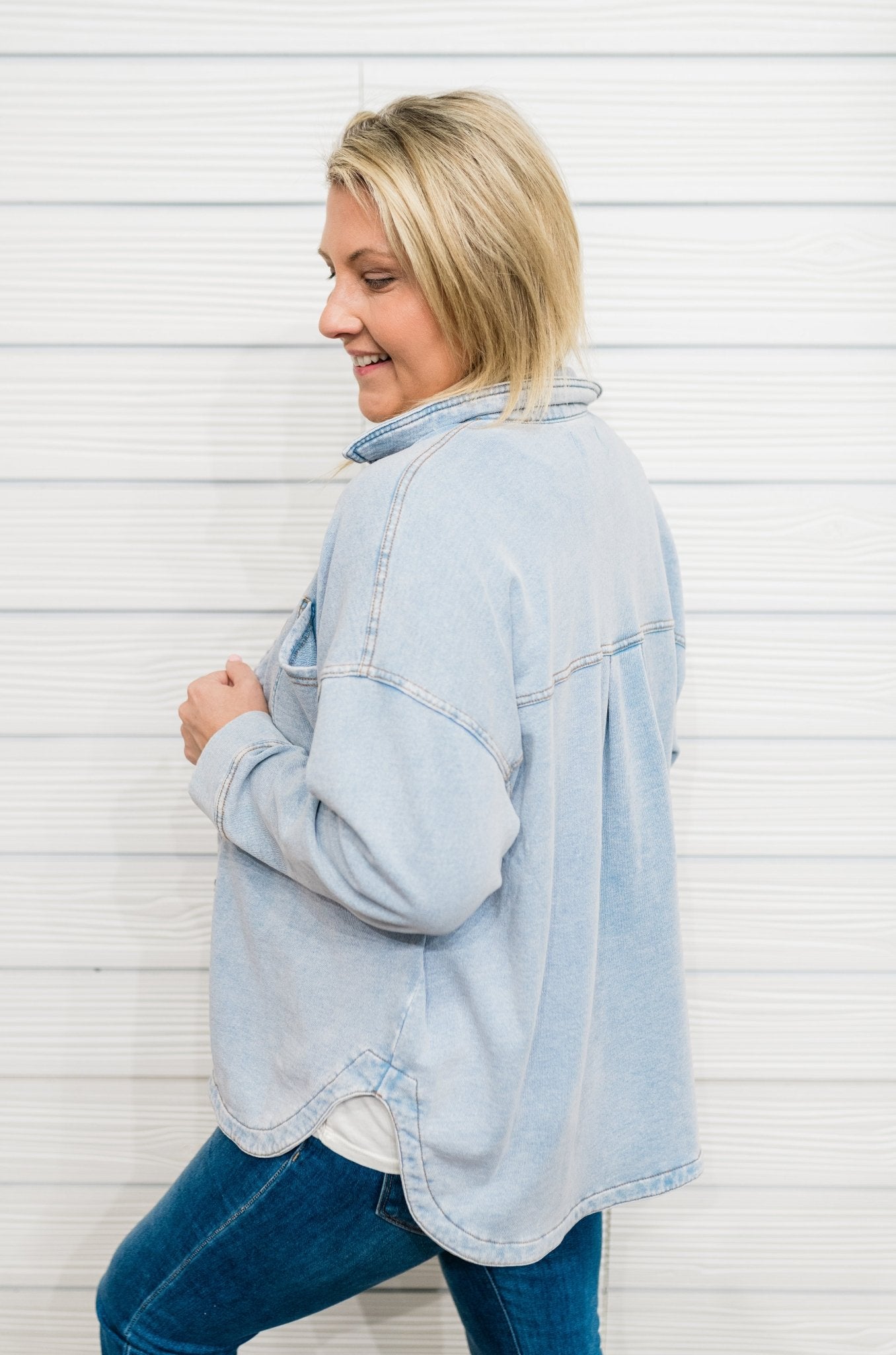 This knit jacket by Z Supply gives off the denim look we all love with the softness of a shacket! Featuring a self-button front and large patch pockets, this jacket is the classic 90s denim style. So cool!