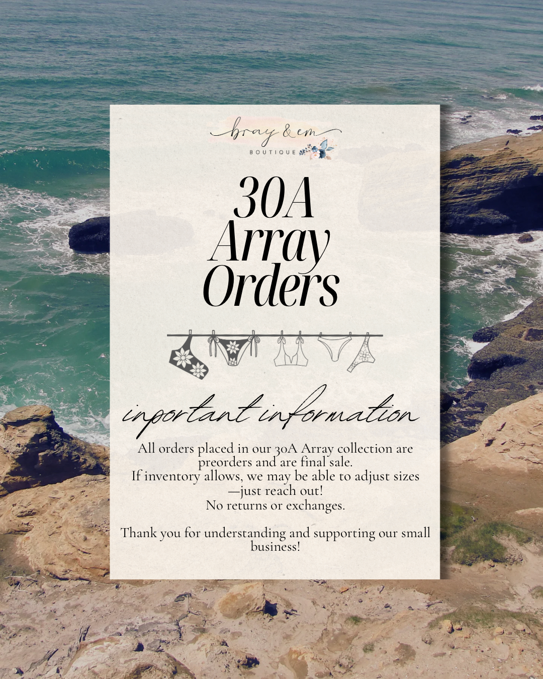 All orders placed in our 30A Array collection are preorders and are final sale.