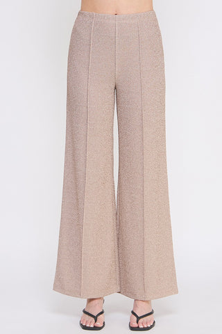 Lurex Knit Front Contour Seam Wide Leg Pant