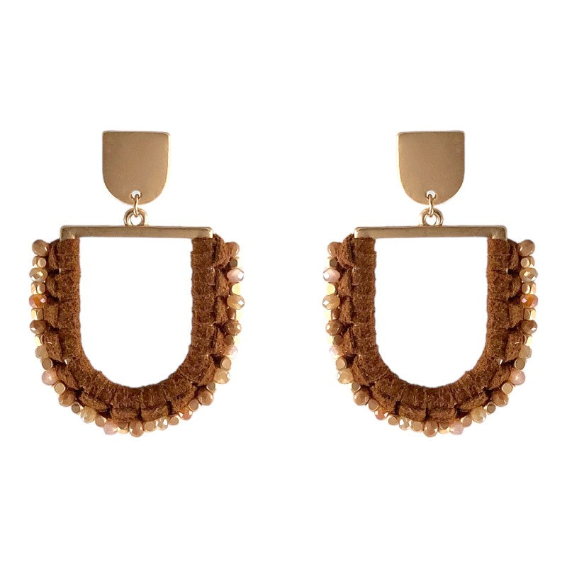 - MEASURES 2" X 1.25", POST BACKING, GOLD TONE HARDWARE, NICKEL & LEAD COMPLIANT, CRYSTAL, METAL BEADING, SUEDE WRAPPED, VINTAGE GOLD