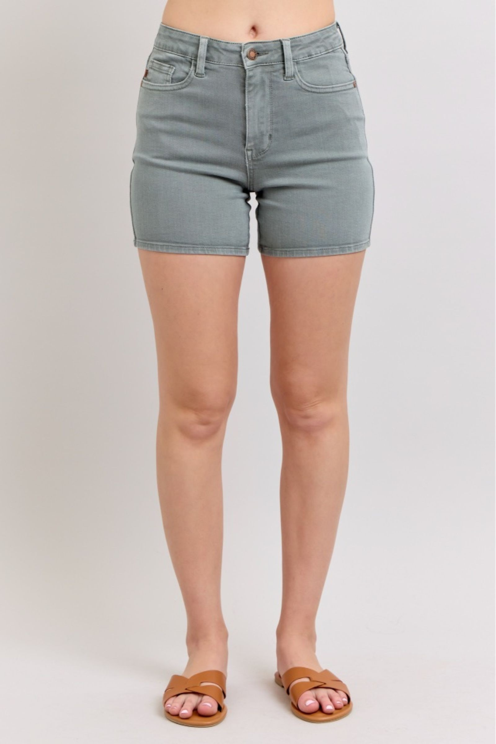 High Waist Garment Dyed & Back Pocket Embroidery Shorts